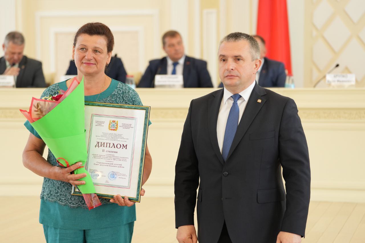 Сегодня в Гомеле были вручены награды победителям ежегодного конкурса среди городских, поселковых, сельских Советов депутатов, органов территориального общественного самоуправления Гомельской области по решению вопросов жизнеобеспечения населения. Приятно отметить, что в числе победителей есть представители Ельского района. Так, Дипломом 2 степени и денежной премией награжден Старовысоковский сельский Совет Ельского района. Почетную награду председателю сельсовета Марии Алесич вручил губернатор Иван Крупко. Поздравляем!
