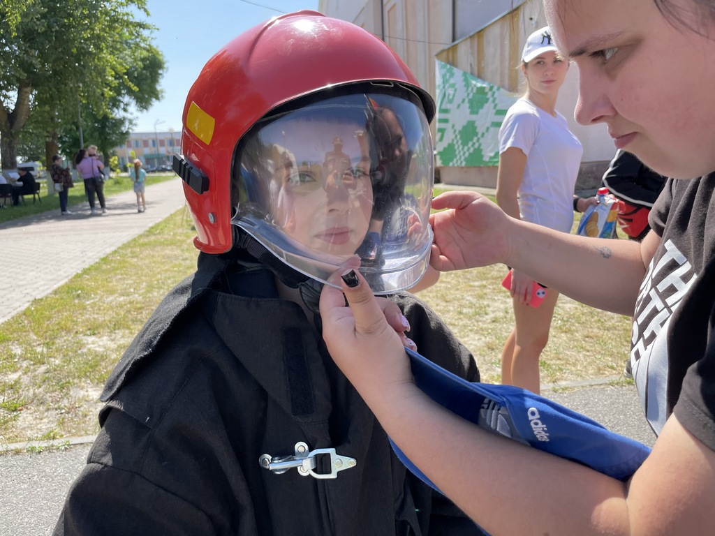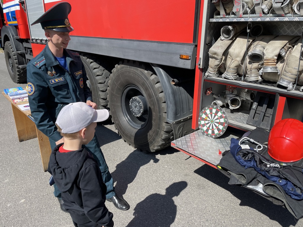 Помимо конкурсов каждый желающий мог почувствовать себя в роли спасателя. Примерять форму и снаряжение, посидеть в кабине пожарного автомобиля, ознакомиться с вооружением техники и даже подышать в аппарате на сжатом воздухе — всё это разрешалось участникам праздника.