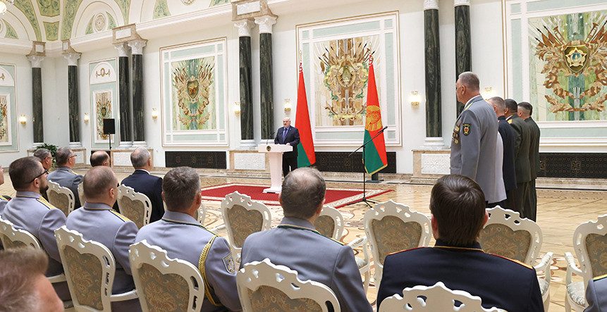 Президент Беларуси Александр Лукашенко вручил генеральские погоны высшему офицерскому составу. Торжественная церемония состоялась 27 июня во Дворце Независимости, передает корреспондент БЕЛТА.