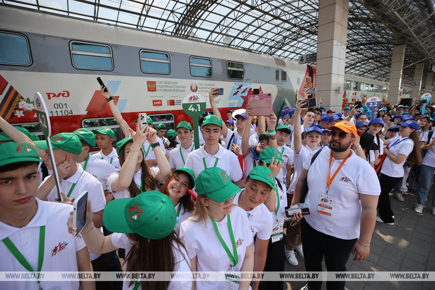 В поезде приехали школьники из России, Кыргызстана и Армении. На перроне вокзала Брест-Центральный их встретили сверстники из Беларуси. Громко и радостно поприветствовав друг друга, ребята отправились на организационное собрание, где получили последние напутствия перед путешествием.