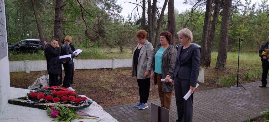 Как рассказала директор Ельского краеведческого музея Татьяна Кашевич, 12 июня 1943 года на этом месте гитлеровцы расстреляли 96 мирных жителей д. Кузьмичи — детей, женщин, стариков.