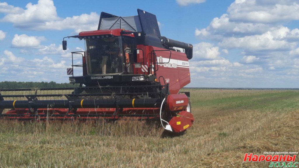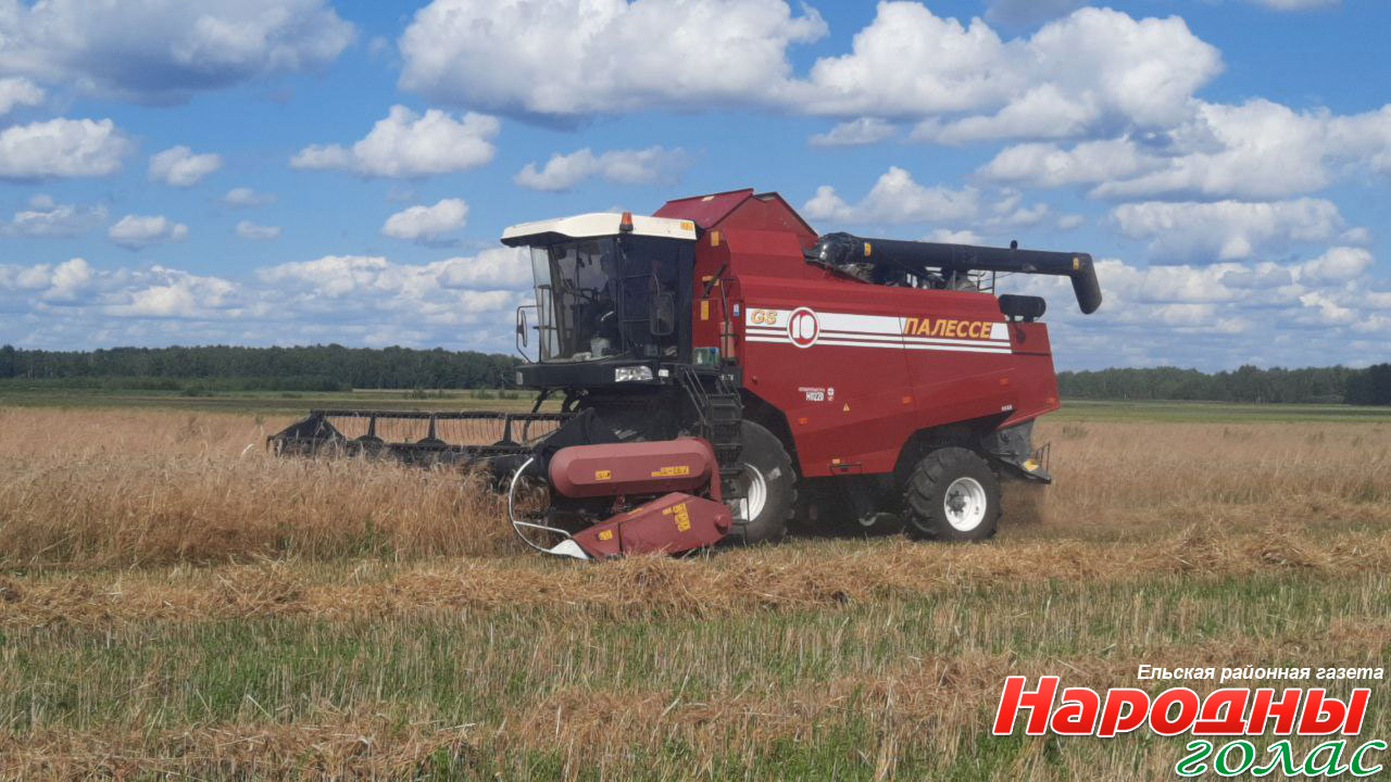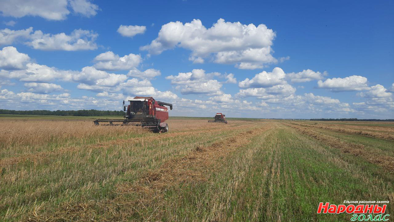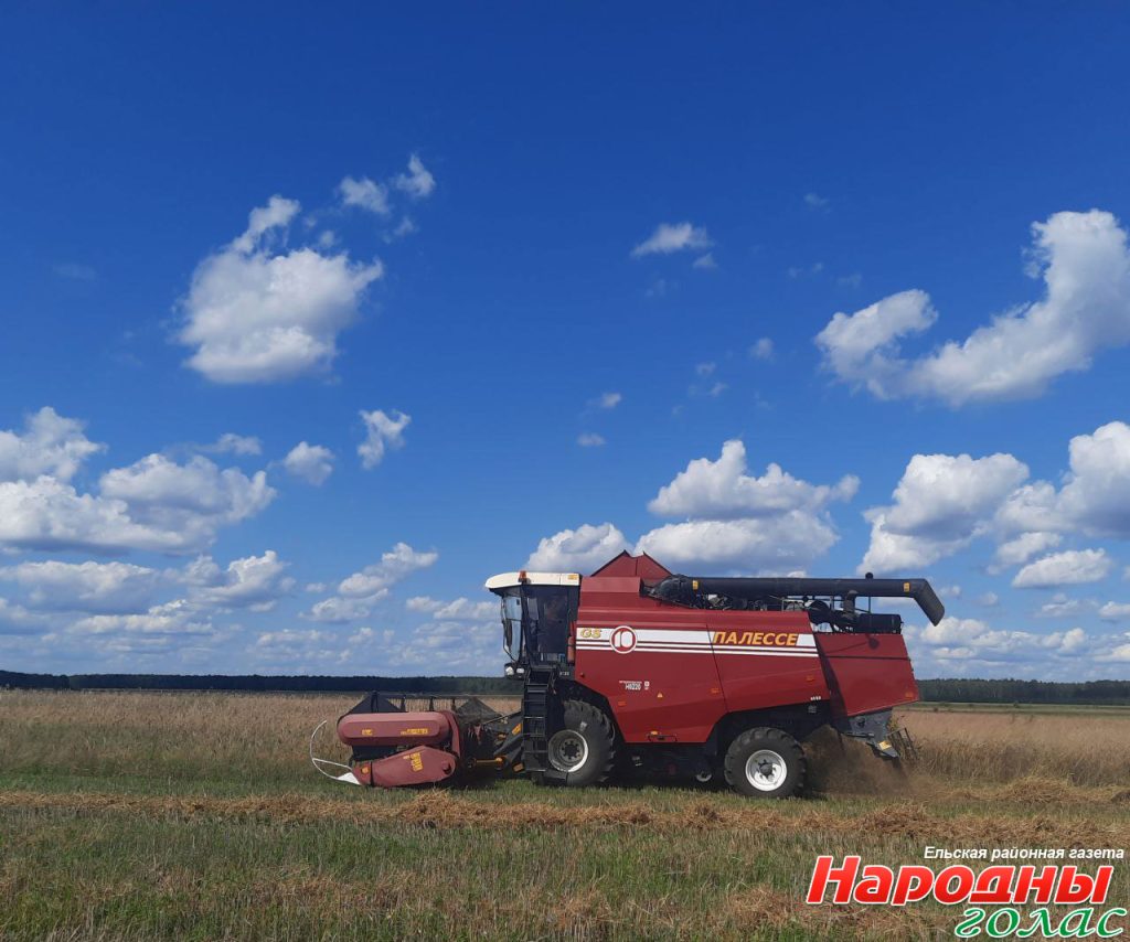 В Ельском районе продолжается уборка зерновых. На полях техника КСУП «Ельск».