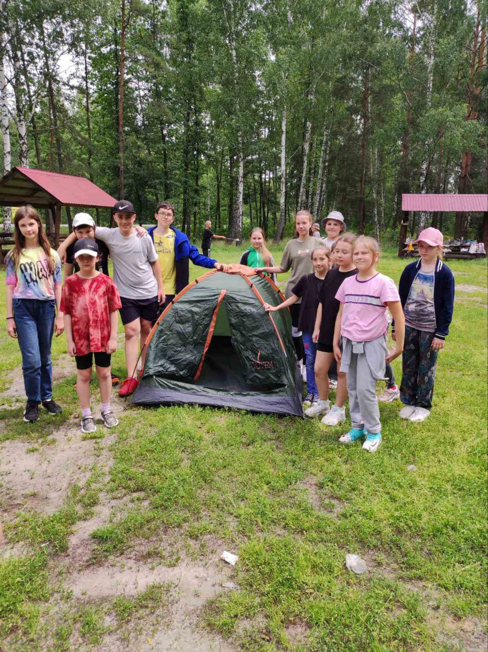 Отдых в оздоровительном лагере «Истоки» Ельской районной гимназии проходит не только весело, но и познавательно-полезно. Ребята отправились в туристический поход » Тропинками родного края» в рамках областной акции «Созидай не словом, а делом». Юные туристы научились устанавливать палатку, готовить походное блюдо, и смогли просто полюбоваться природой Ельщины.