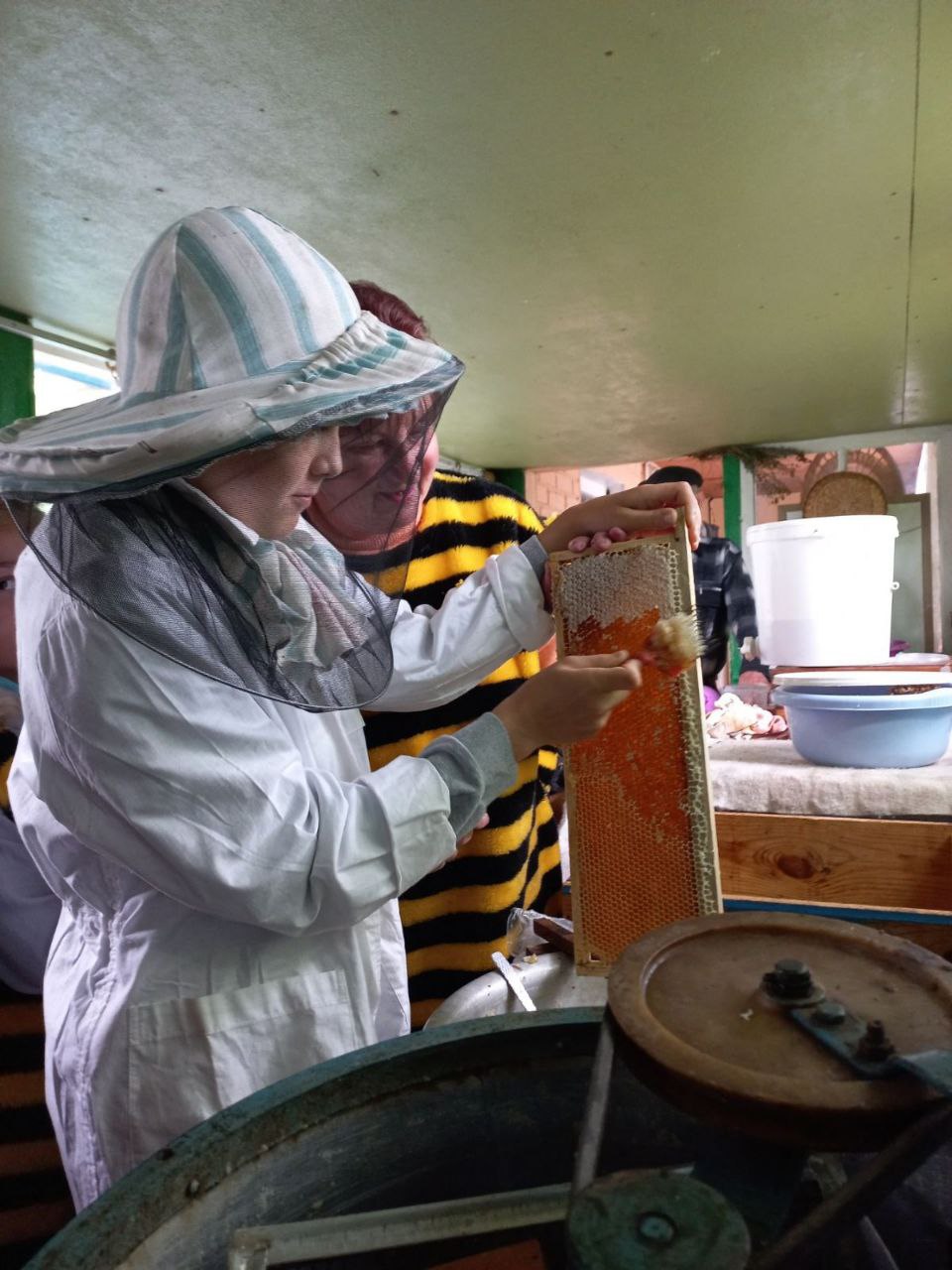 Ельские школьники, посещающие оздоровительный лагерь»Патриоты» средней школы №1 г.Ельска , побывали в Старовысоковской агроусадьбе «Медовый рай», где увидели много интересного. Ребята наблюдали, как пчёлка добывает мёд, участвовали в процессе откатки мёда. Каждый экскурсант получил в подарок маленькую баначку мёда. Хозяйка агроусадьбы Любовь Власенко угостила ребят вкусным обедом и травяным чаем. Всем очень понравилось.