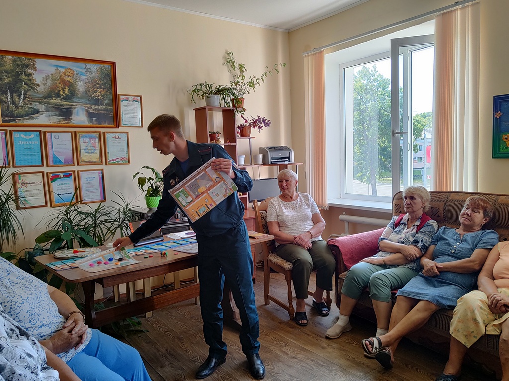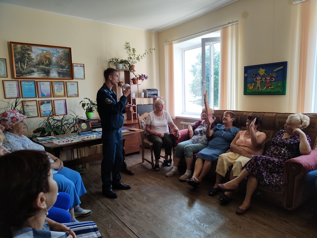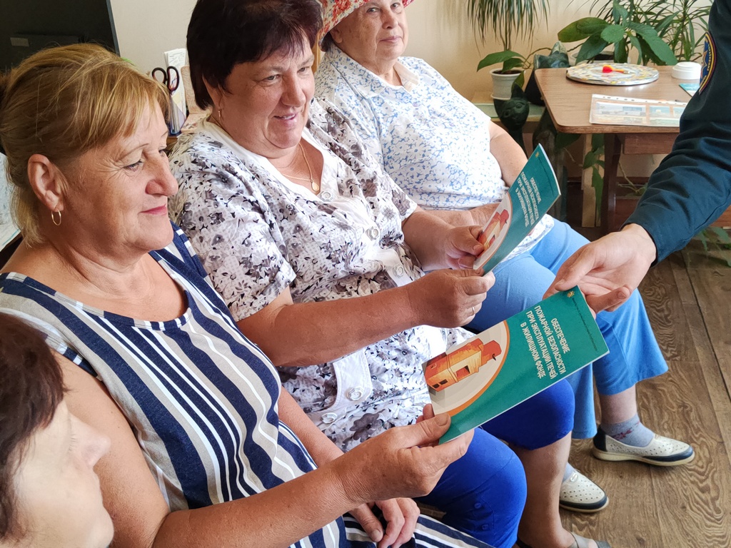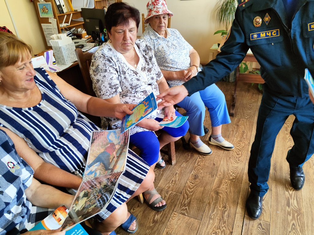 Вручил информационные буклеты с рекомендациями о безопасности. Также проверил знания пенсионеров, предложив им различные ситуации, в которых они могли бы оказаться в случае возникновения пожара.