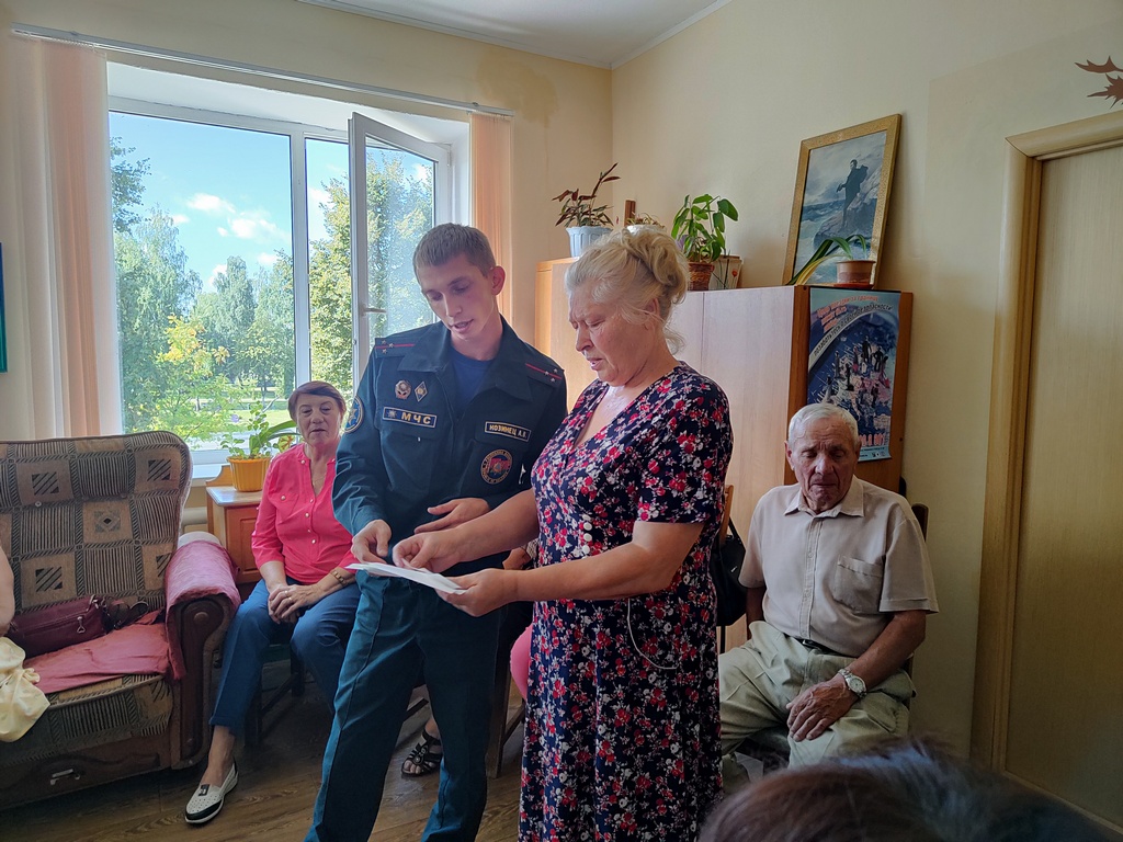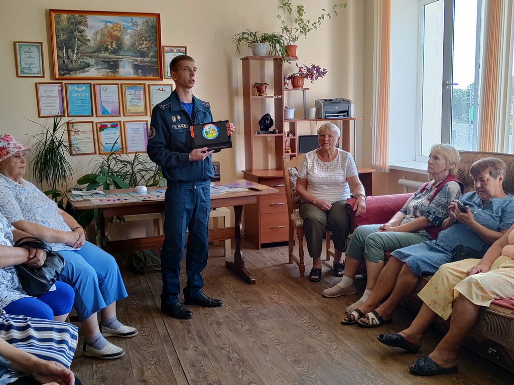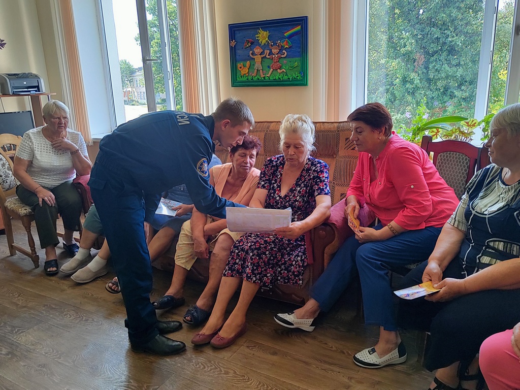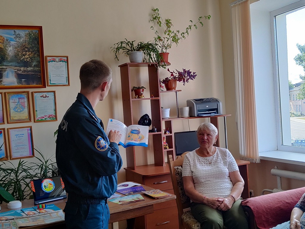 Вручил информационные буклеты с рекомендациями о безопасности. Также проверил знания пенсионеров, предложив им различные ситуации, в которых они могли бы оказаться в случае возникновения пожара.