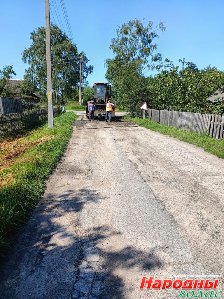 На улице Первомайской г. Ельска ведутся работы по ямочному ремонту дороги.