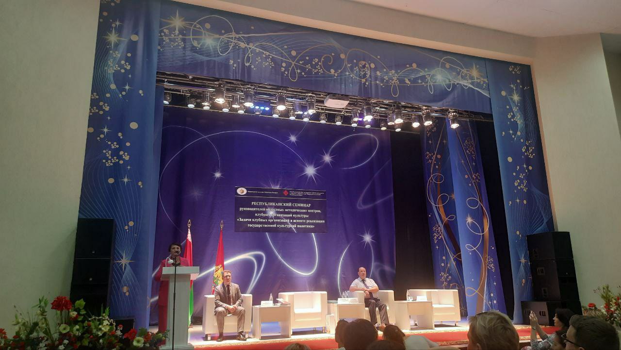 В ходе семинара участники и гости рассматривают вопросы современного состояния учреждений культуры Беларуси, создания оптимальной модели качества и доступности услуг клубных учреждений, отвечающей государственной культурной политике, особенности работы с инвалидами в учреждениях культуры по их социальной интеграции в общество.