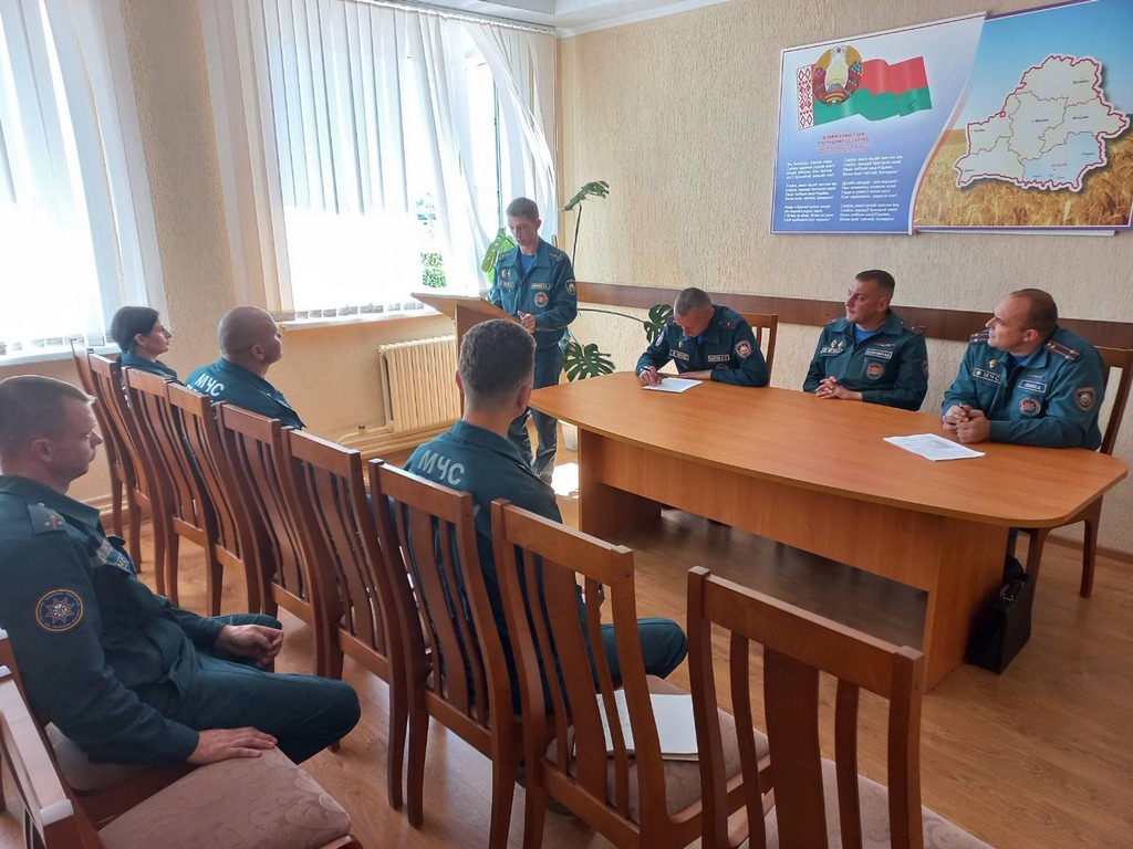 Иван Дашкевич, начальник районного отдела по ЧС призвал всех быть примером для остальных работников, соблюдать дисциплину как в служебное время, так и дома, а также ответственно относиться к своим должностным обязанностям. В продолжение заседания с офицерским составом поговорили о теме наставничества, целью которой является оказание адаптационной помощи молодым работникам в приобретении им необходимого опыта работы на личном примере наставника. Также Иван Васильевич призвал оказывать молодежи всестороннюю помощь в решении служебных и иных задач.