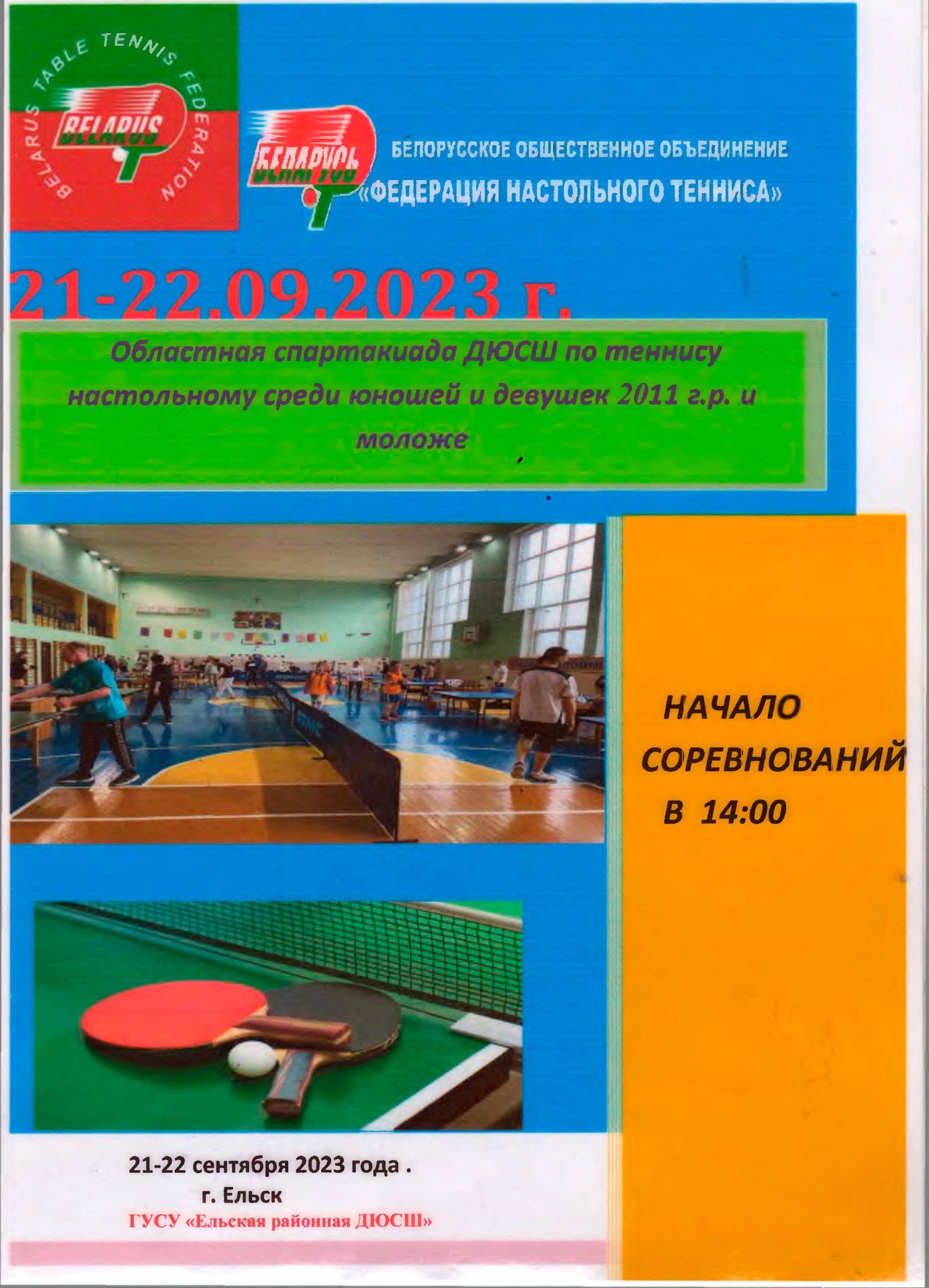 Областная спартакиада ДЮСШ по настольному теннису пройдёт 21-22 сентября в Ельске.