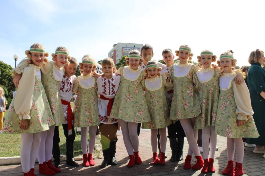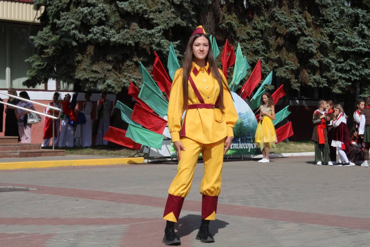 «Беларусь адзiная» : старт! В центре внимания — Центр культуры Светлогорска. Перед входом — показ мод и коллекций белорусской одежды, музыка и танцы.