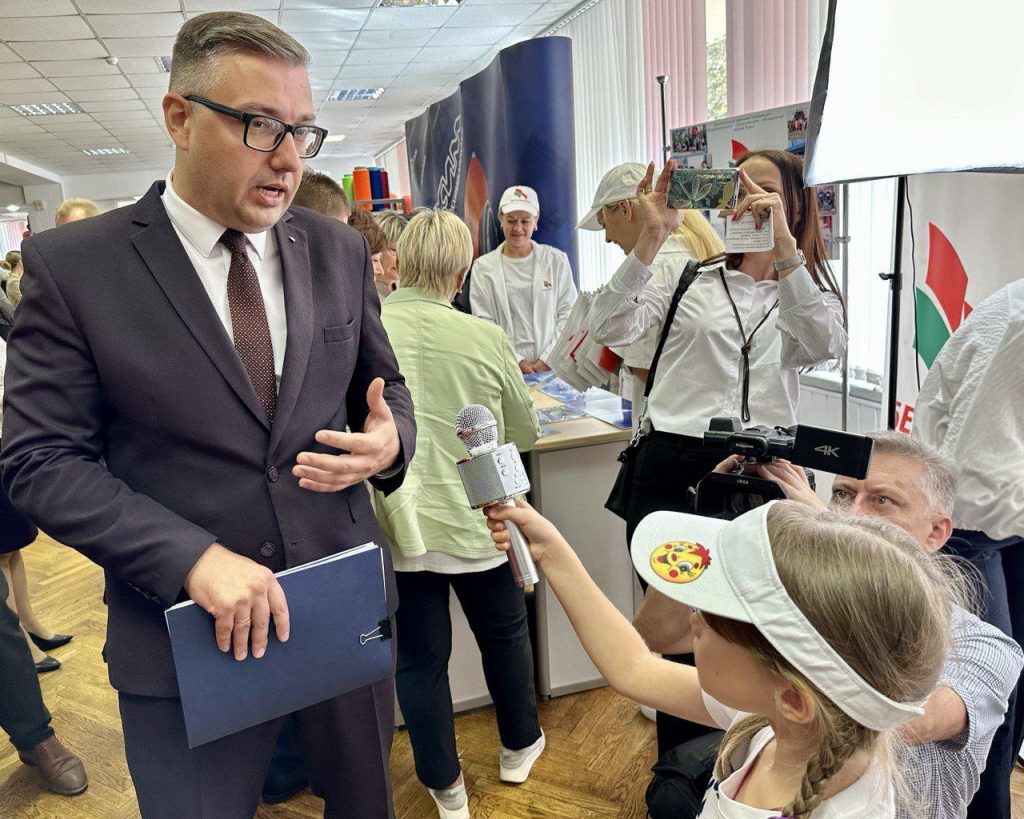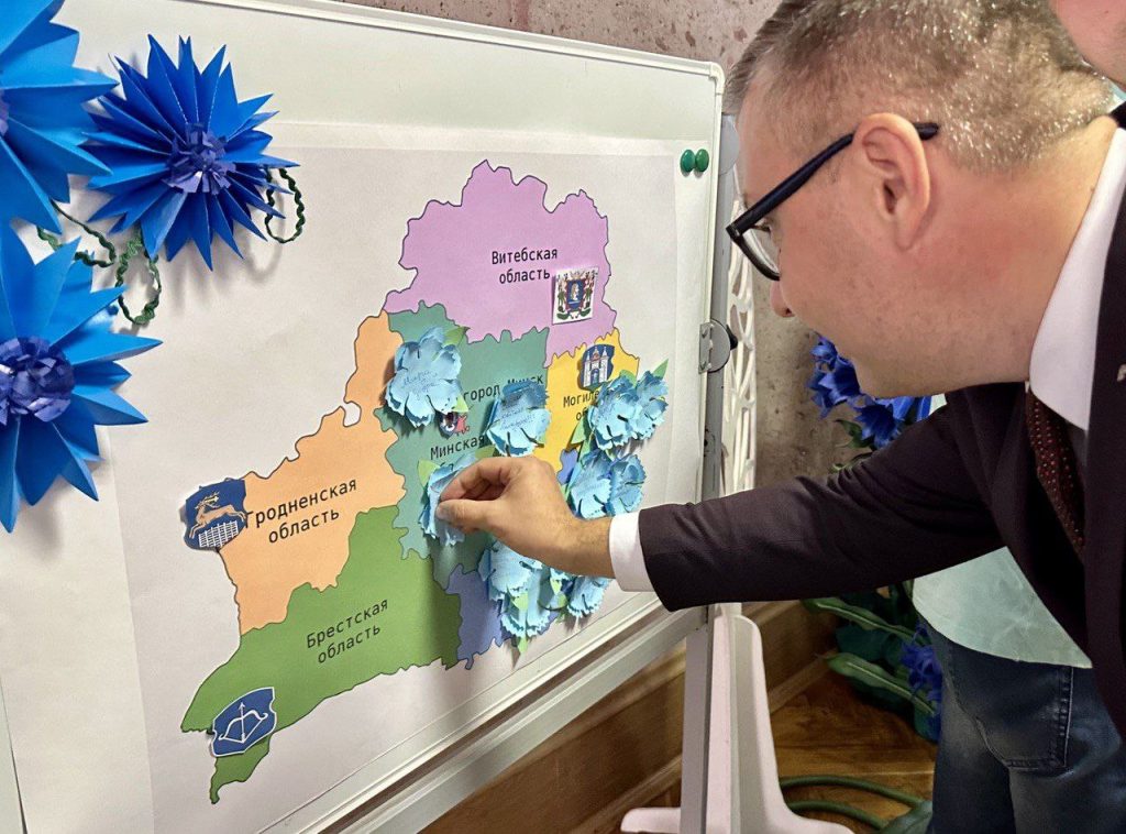Вадим Николаевич ознакомился с представленными выставочными площадками, оставил пожелание любимой Беларуси на символичном бумажном цветке — васильке, а также поучаствовал в интерактивном опросе от местной районной газеты.