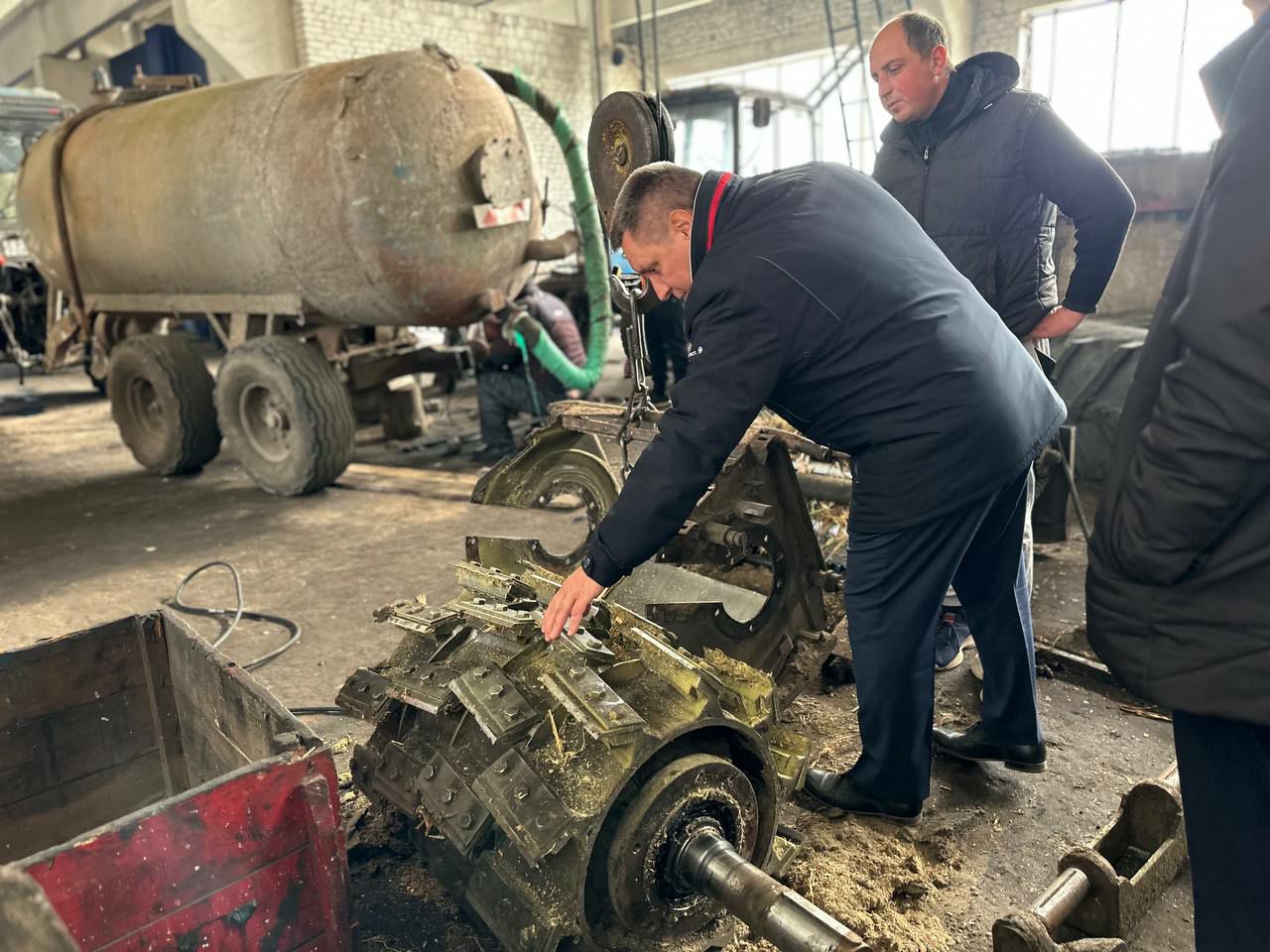 Побывал помощник Президента — инспектор по Гомельской области Юрий Горлов на мехдворе КСУП «Добрынь», где механизаторы занимались ремонтом техники, а также на кукурузном поле, где активно велась уборка «царицы полей». В ходе общения с аграриями он делился богатым опытом, давал советы по организации ремонтных работ и заготовке кормов.