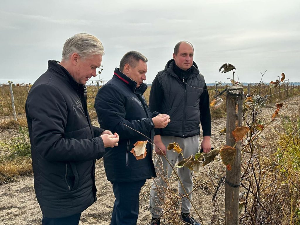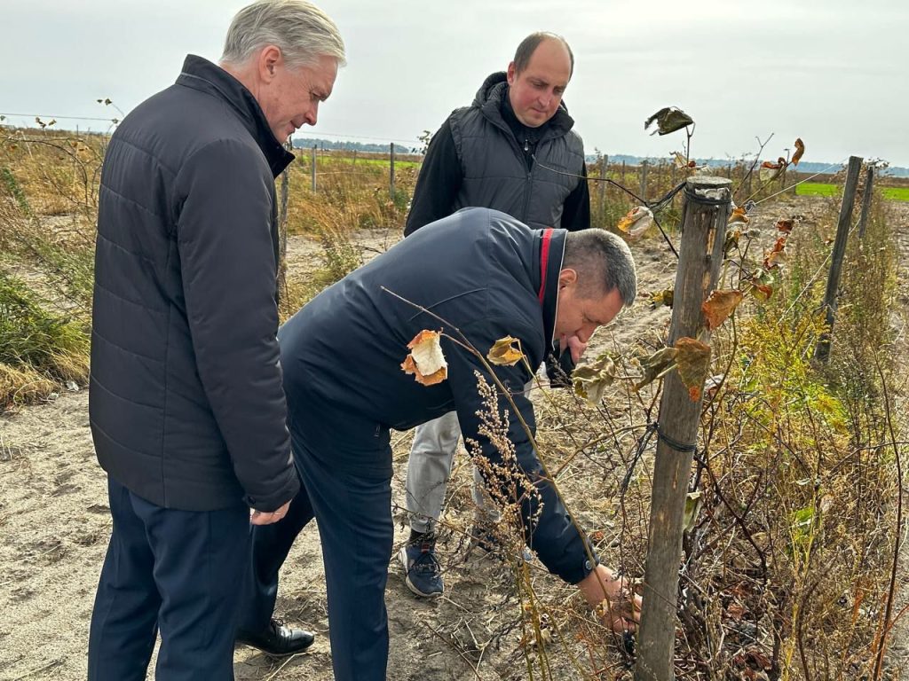 Помощник Президента — инспектор по Гомельской области Юрий Горлов посетил виноградное поле в КСУП «Добрынь». Четыре года назад на площади в полтора гектара было высажено свыше 1100 молодых саженцев винограда. Среди них семь сортов винограда таджикской селекции (Шаман, Сафина и другие), а также белорусской селекции. Они дружно стали расти на добрынской земле. Однако из-за весенних заморозков в этом году часть виноградника пострадала и нуждается в особом внимании и уходе. Юрий Горлов посоветовал аграриям не торопиться с выводами, чтобы не наделать ошибок. Уместным будет использовать опыт белорусских ученых по возделыванию винограда в зоне рискованного земледелия, считает помощник Президента.