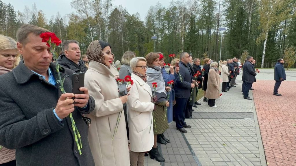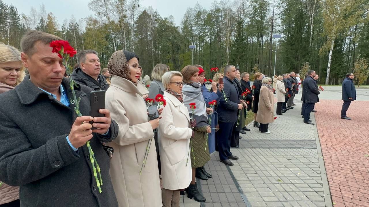 Участники выездной коллегии Мининформа в Светлогорском районе, где находятся и представители Ельского района, посещают мемориальный комплекс Ола.