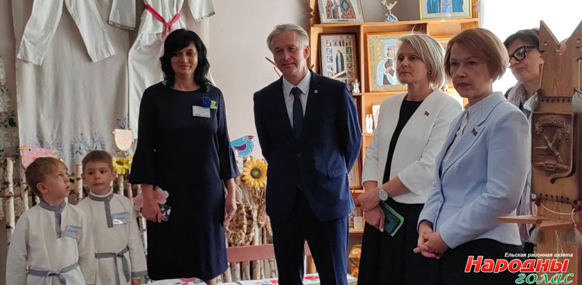Депутаты, участники выездного заседания, посетили детский сад №1 г. Ельска, где им рассказали о формировании уважительного отношения к историческим святыням и памятникам родного края, вызывающим чувство гордости за достижения Ельского района. А также о сохранении национальных традиций и народных обрядов и передаче их подрастающему поколению.