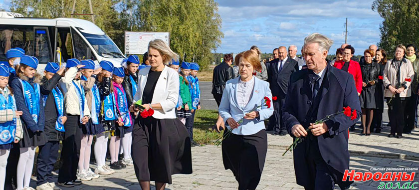 Участники семинара почтили память погибших воинов, освобождавших от немецко-фашистских оккупантов Ельский район, и возложили цветы у памятника.