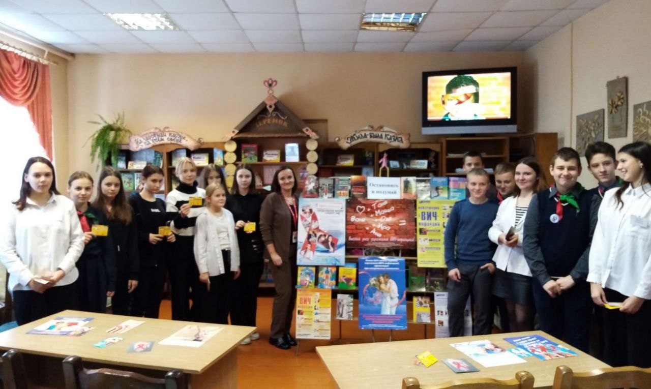 Накануне Всемирного дня борьбы со СПИДом, в отделе по обслуживанию детского читателя г. Ельска прошла актуальная беседа «Как не оказаться за чертой?» с учащимися средней школы №1 г.Ельска.