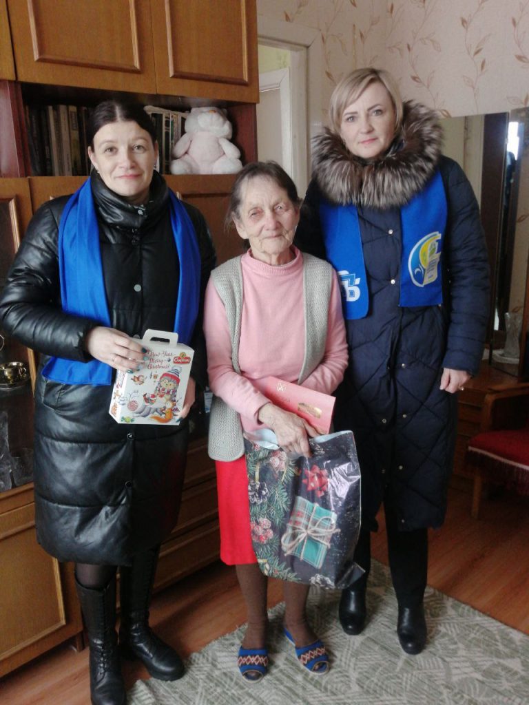 В преддверии 80-летия освобождения г.Ельска и Ельского района от немецко-фашистских захватчиков и в рамках акции «От всей души» председатель Ельской районной организации ОО «Белорусский союз женщин» Тамара Денисова и председатель Ельской районной организации Белорусского профсоюза работников образования и науки Елена Богач, с пожеланиями здоровья, долголетия, мирного неба над головой посетили узницу Великой Отечественной войны, ветерана педагогического труда Людмилу Данильченко.