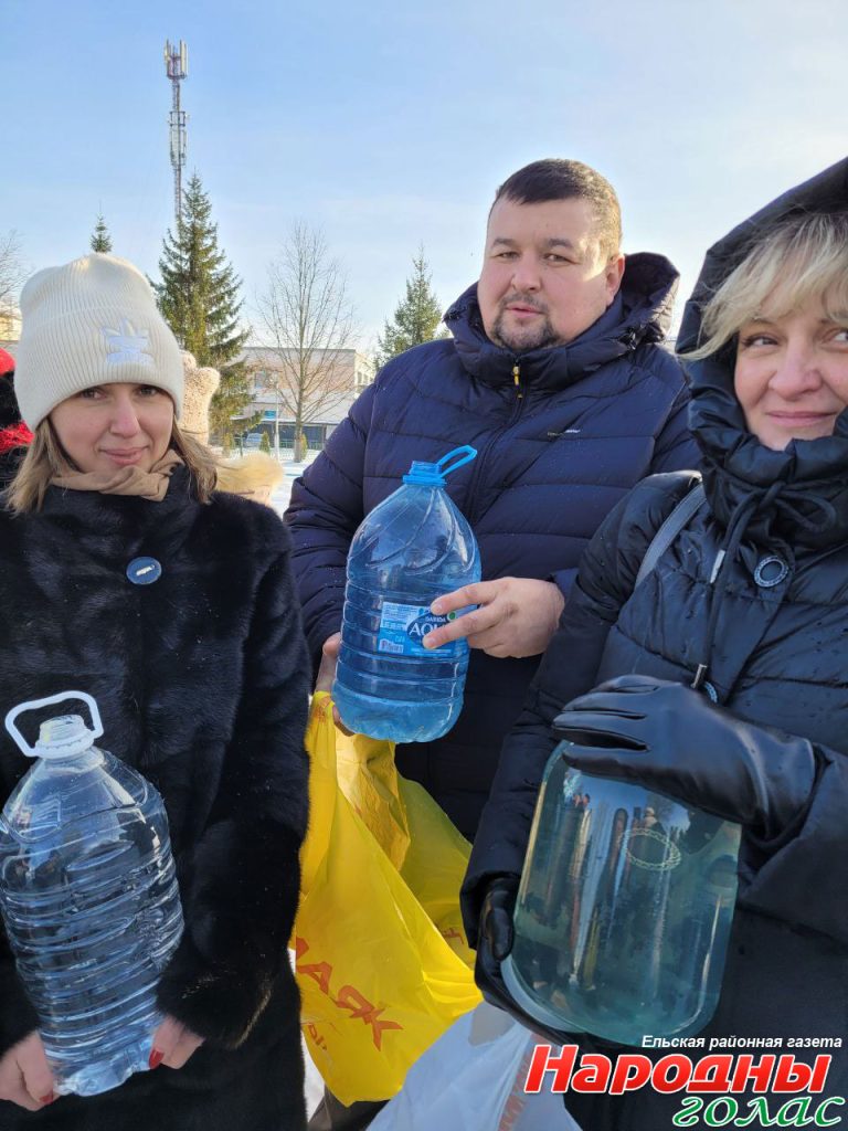 Крещение Господне один из любимейших праздников жителей Ельщины. В церквях прошли Божественные литургии с чином Великого освящения воды, которая сегодня преобретает целебные свойства. После освящения ельчане наполняли святой водой ёмкости, веря в её чудодейственную силу.