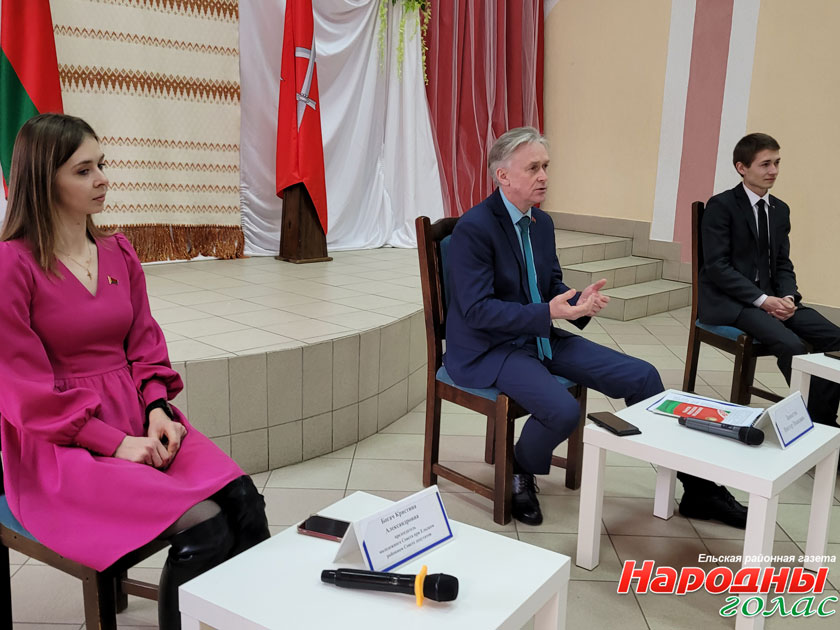Зачем идти на выборы и для чего Беларуси парламент при такой сильной президентской власти. За кого отдать свой голос, и кто в ответе за будущее страны. На эти вопросы держали ответ спикеры – председатель Ельского райисполкома Виктор Замостик, председатель Молодежного совета при Ельском райсовете депутатов Кристина Богач, а также лидер районной организации БРСМ Алексей Засинец.