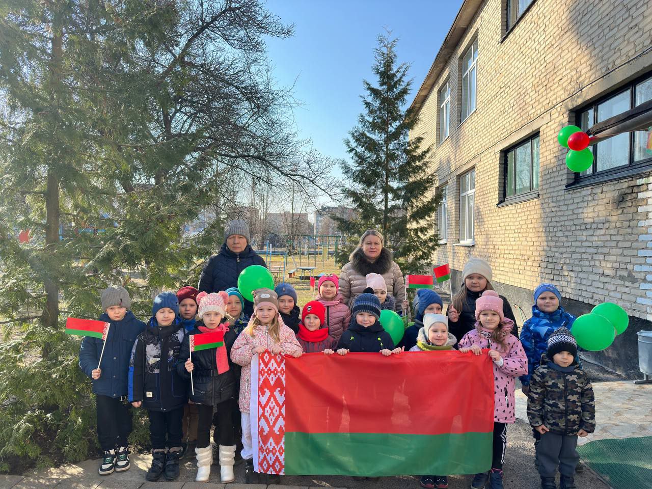 Каждый год  День Конституции Республики Беларусь 15 марта в детском саду № 5 г. Ельска начинается с торжественной линейки, где заведующий учреждением Ирина Купраенко поздравляет с праздником всех ребят и работников.