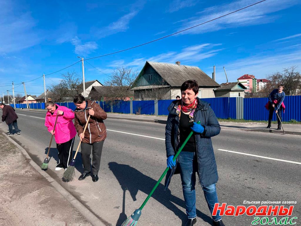 Заметно преобразился во время субботника городской парк Ельске. Вооружившись граблями и метёлками, лопатами и щётками, работники райисполкома убрали прошлогоднюю листву, побелили деревья и подмели тротуарные дорожки. Как красиво стало вокруг! Просто глаз не отвести!