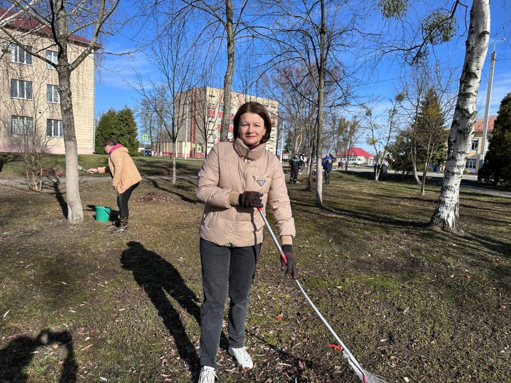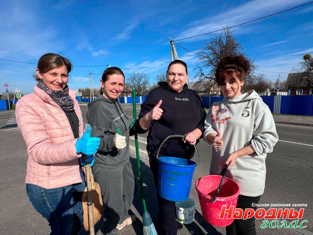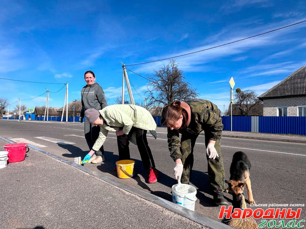 Работники отдела образования Ельского райисполкома массово и с задором работают на субботнике. Они уже навели порядок на прилегающей к административным зданиям территории и благоустраивают улицу Гагарина. Нужно и песок убрать с обочины дороги, и побелить бордюры. С весёлыми настроением работают они сегодня.