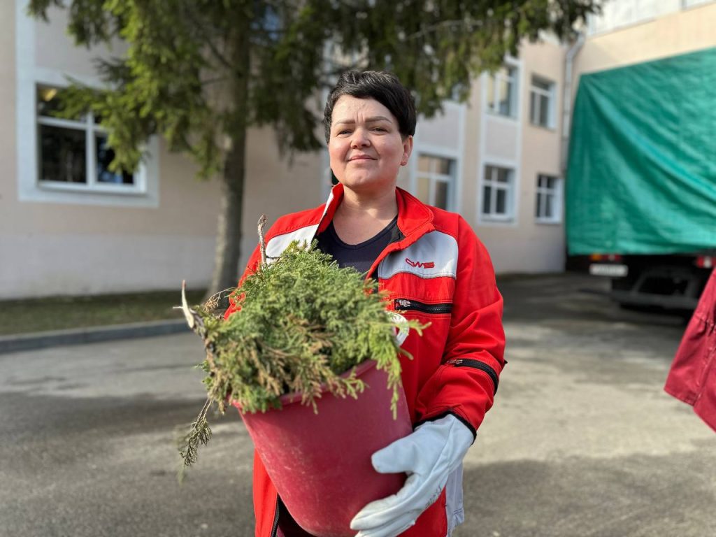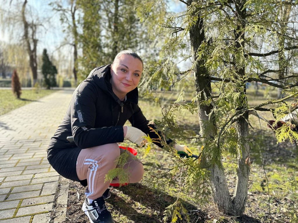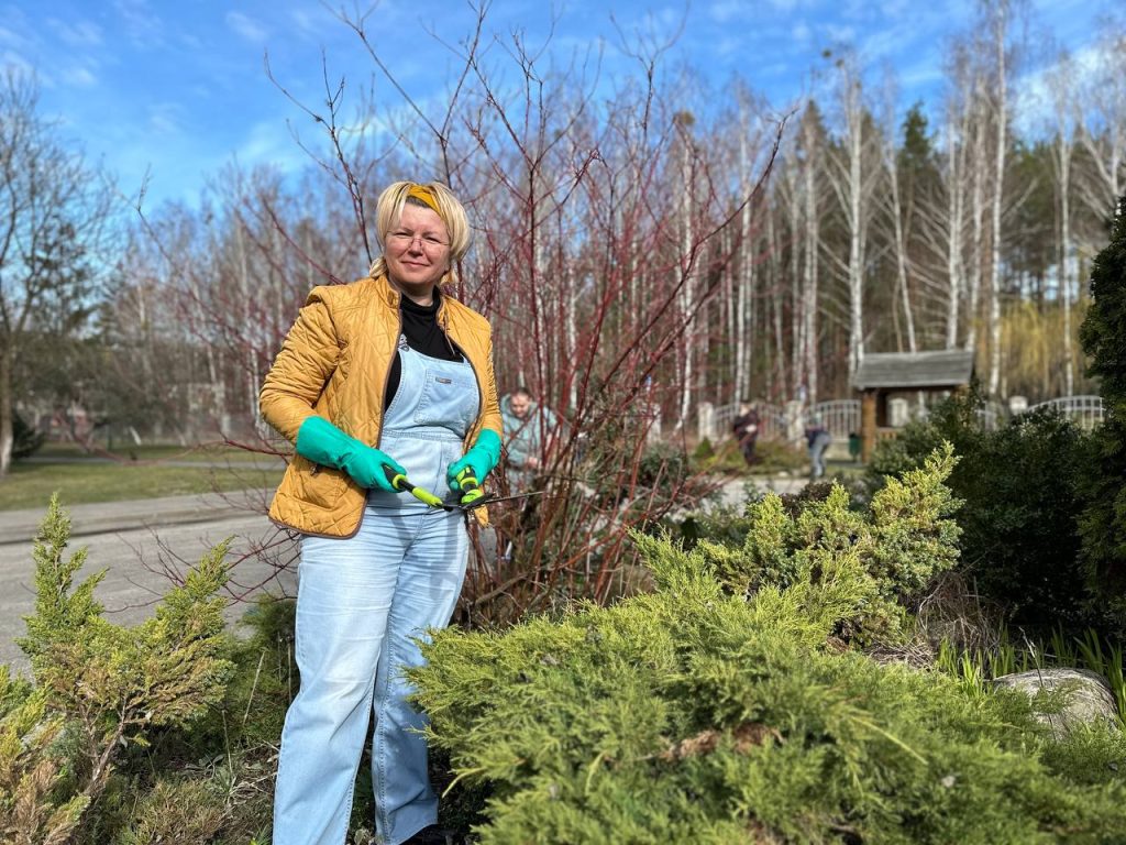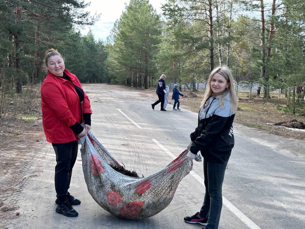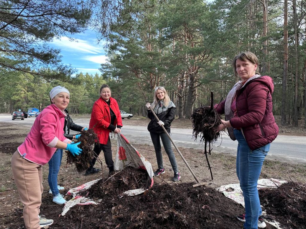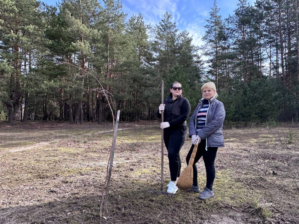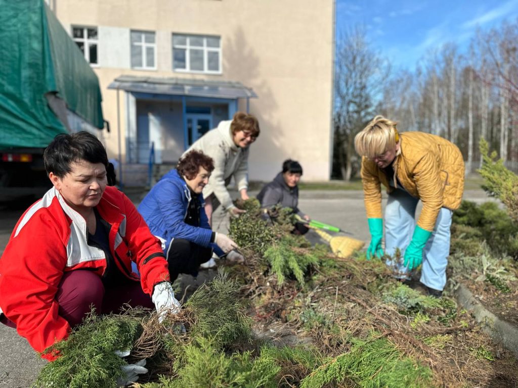 Во время субботника работники Ельской ДЮСШ наводят порядок на стадионе и прилегающей территории. Они делают это с желанием, чтобы детям и всем, кто посещает спортивный комплекс, было комфортно.