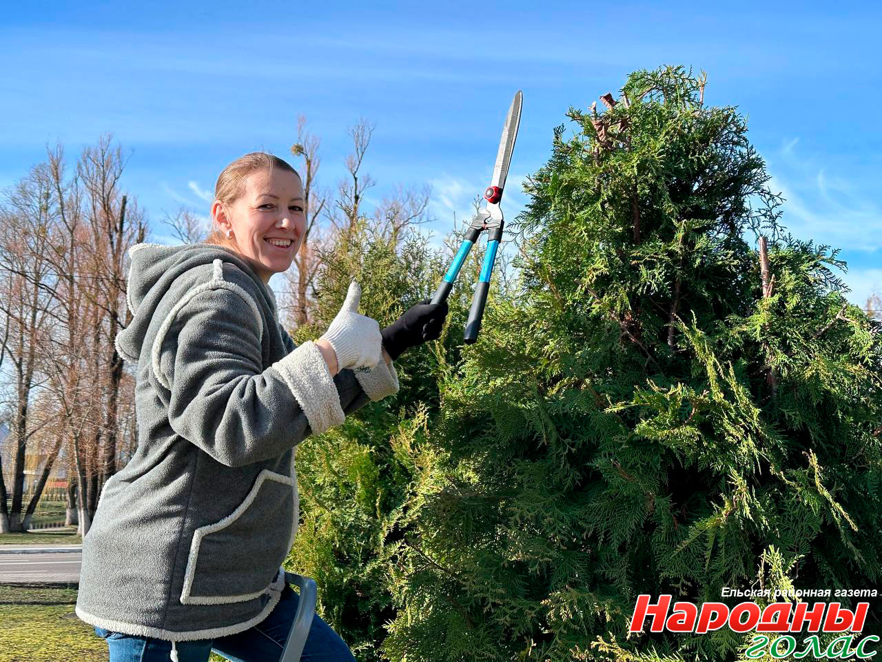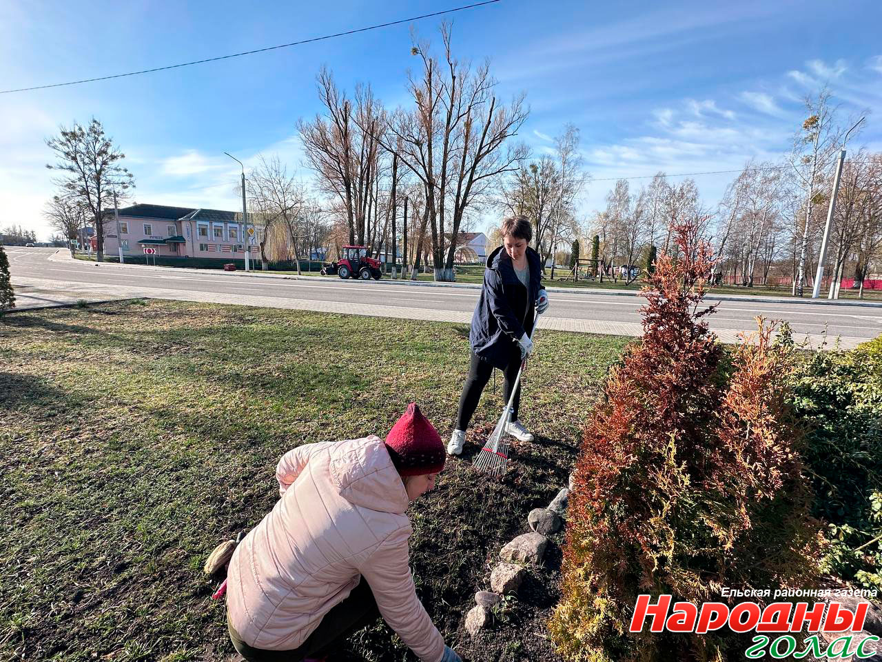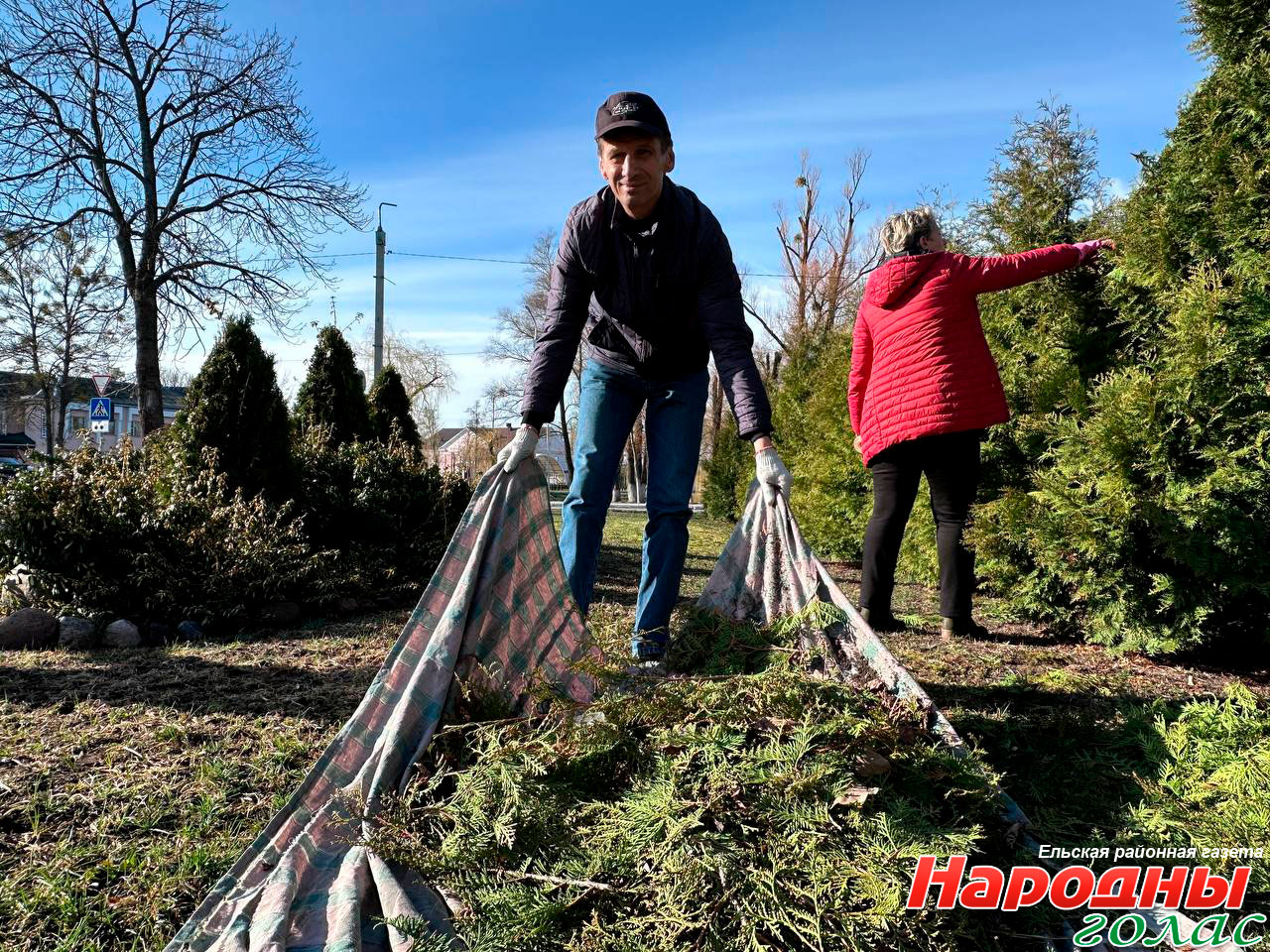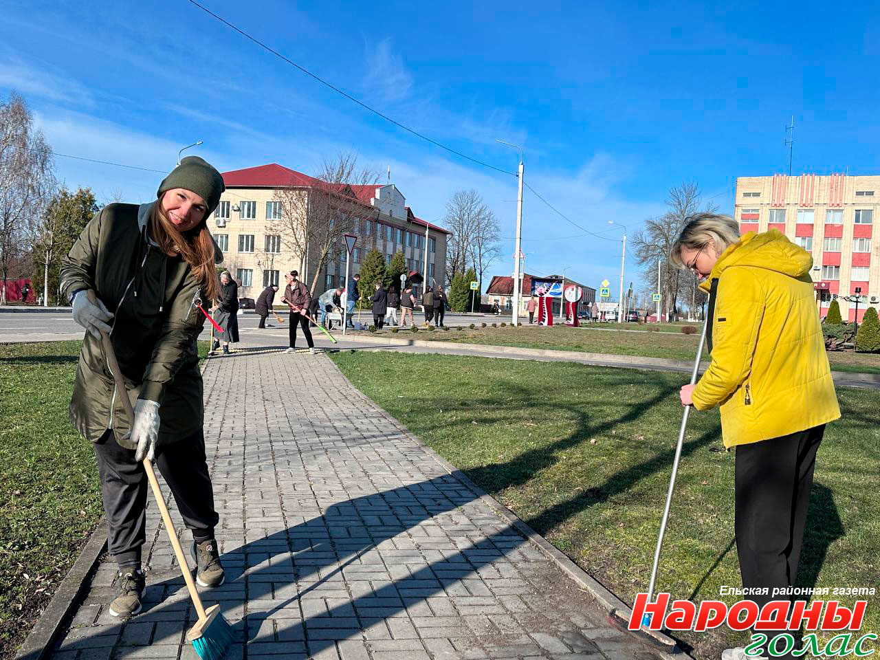 Заметно преобразился во время субботника городской парк Ельске. Вооружившись граблями и метёлками, лопатами и щётками, работники райисполкома убрали прошлогоднюю листву, побелили деревья и подмели тротуарные дорожки. Как красиво стало вокруг! Просто глаз не отвести!