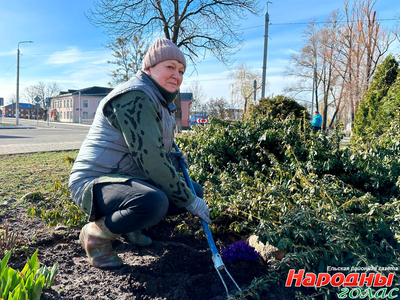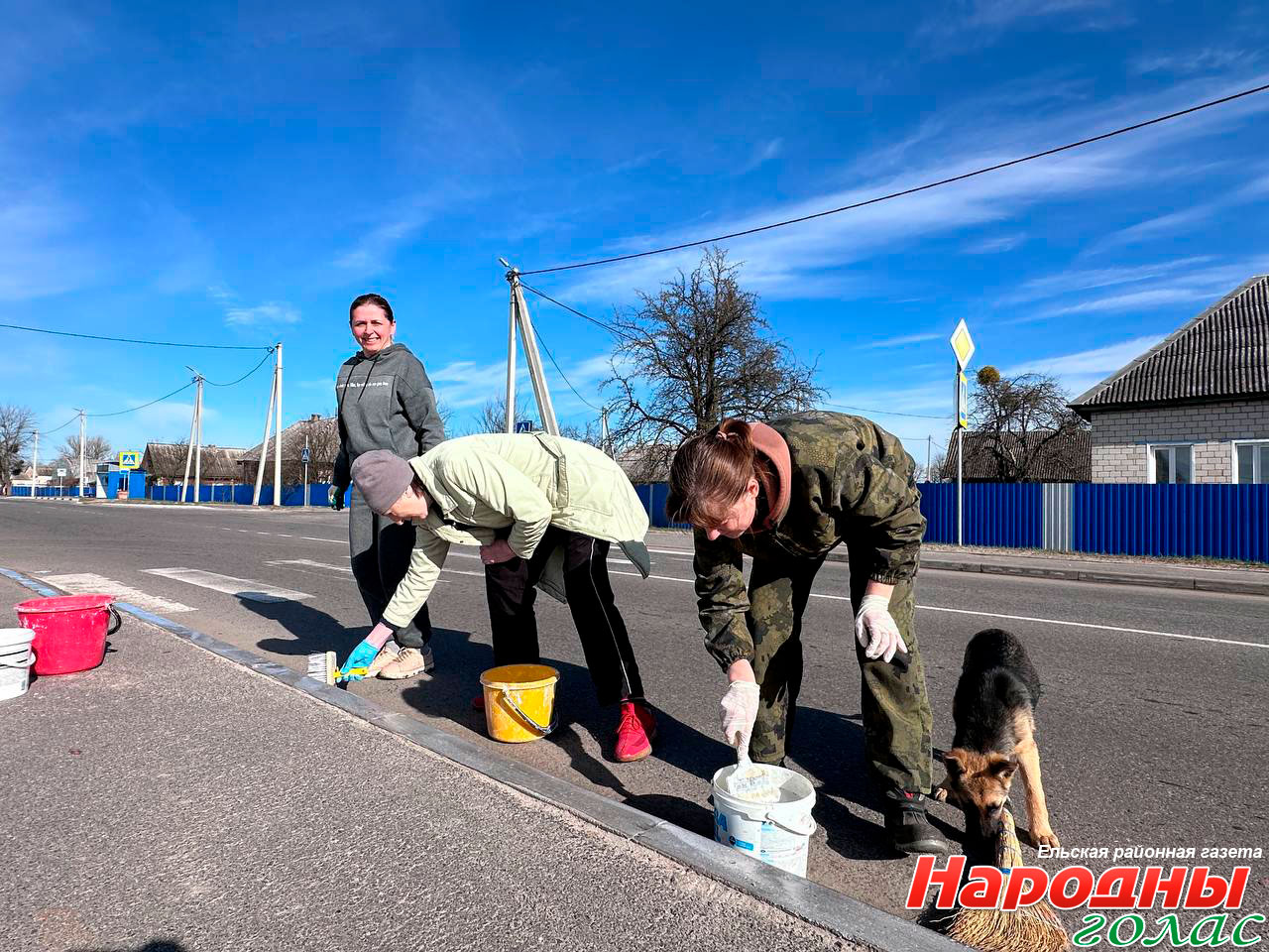 Работники отдела образования Ельского райисполкома массово и с задором работают на субботнике. Они уже навели порядок на прилегающей к административным зданиям территории и благоустраивают улицу Гагарина. Нужно и песок убрать с обочины дороги, и побелить бордюры. С весёлыми настроением работают они сегодня.