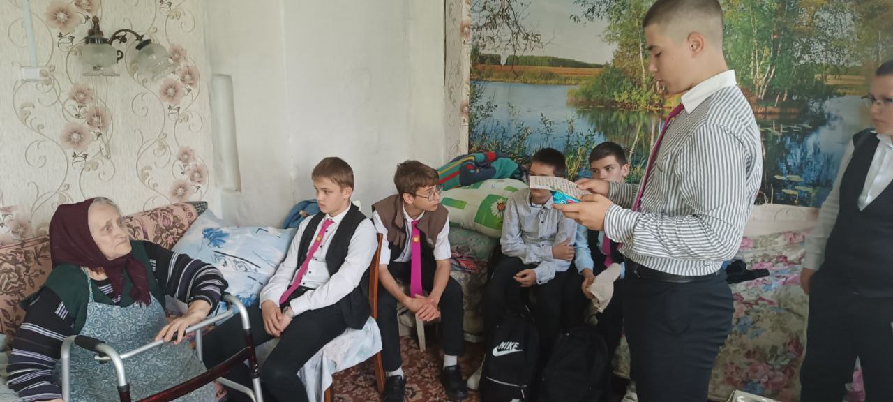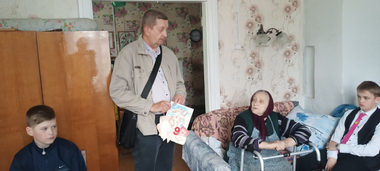 Ребята поздравили Ольгу Михайловну с Днём Победы и прочитали ей письмо, в котором всем классом благодарили ветеранов за мирное небо над головой!