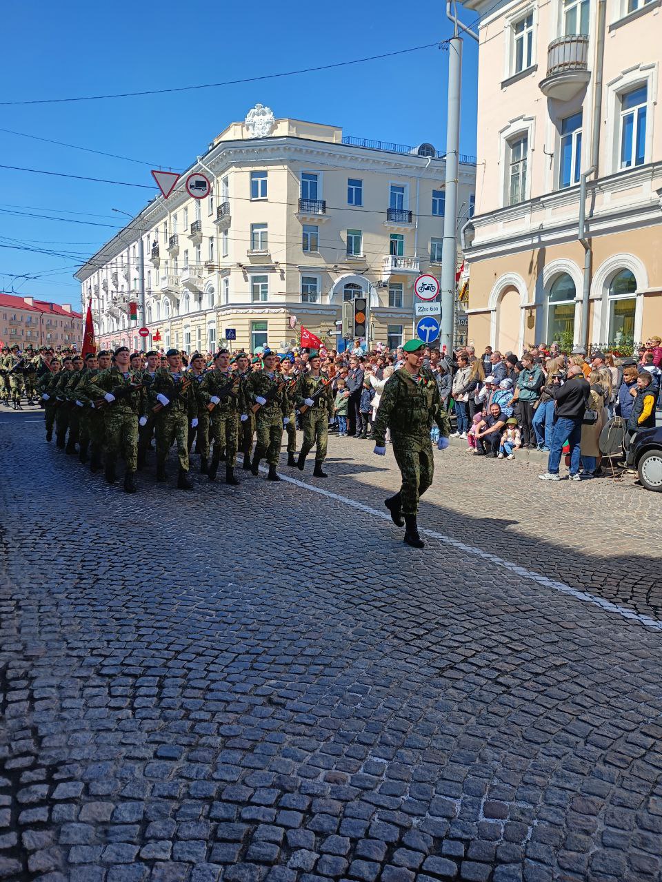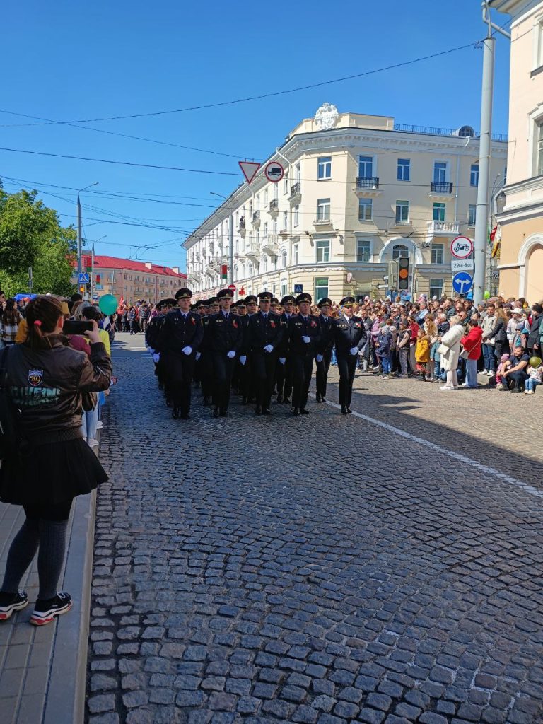 Моменты парада военизированных подразделений и военной техники на празднике Победы в Гомеле.