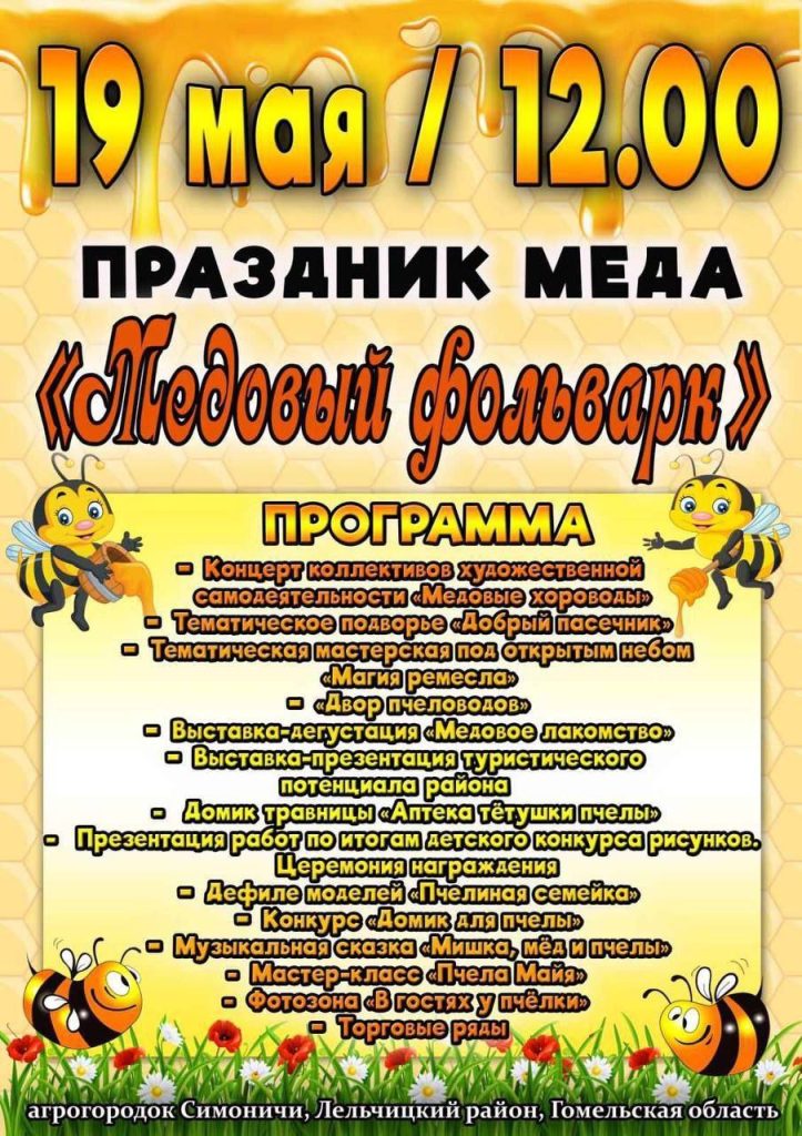 Праздник «Медовый фольварк», приуроченный к Всемирному дню пчёл, прошёл 19 мая в агрогородке Симоничи Лельчицкого района. Полешуки радушно принимали гостей: местные хозяйки угощали ароматным мёдом и домашней выпечкой, а пчеловоды провели мастер-класс по изготовлению бортей для диких пчёл.