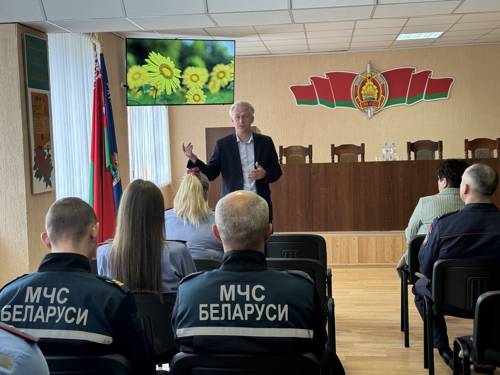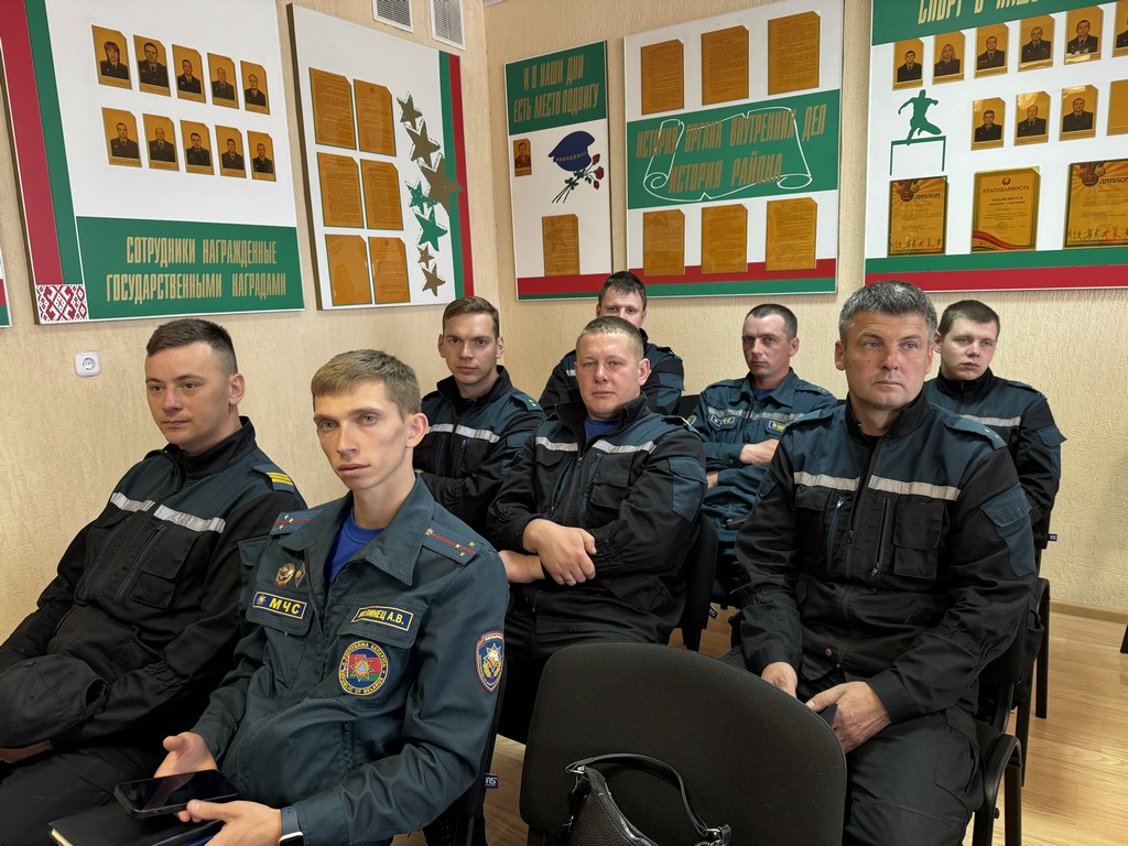 В продолжении темы Всебелорусского народного собрания в актовом зале РОЧС перед спасателями выступил заместитель начальника отдела Евгений Банчук.