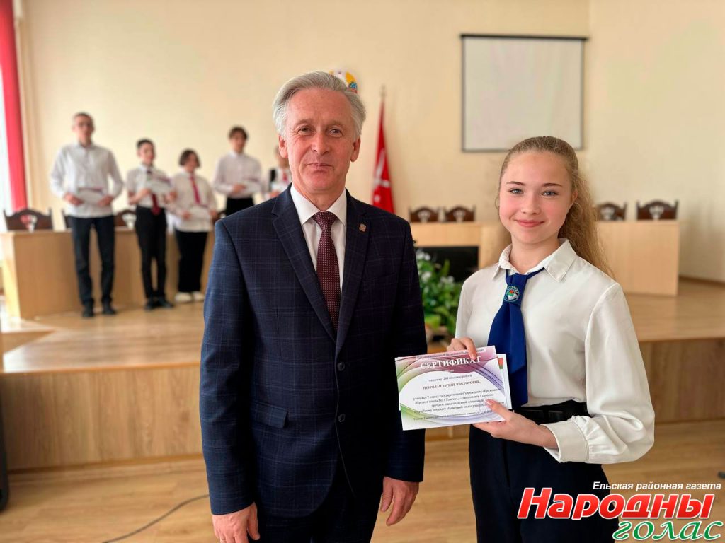 На праздничном мероприятии отметили тех, чьи ум, знания и талант приносят славу нашему району – победителей и участников республиканских олимпиад, конкурсов, соревнований. Именно об этих девочках и мальчиках можно по праву сказать, что они – гордость Ельского района, настоящее созвездие надежд будущего нашей страны.