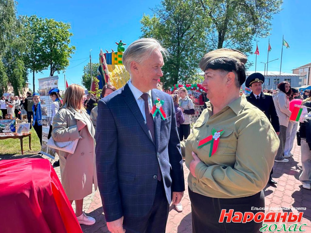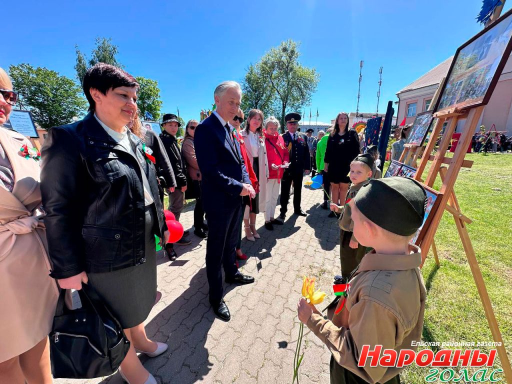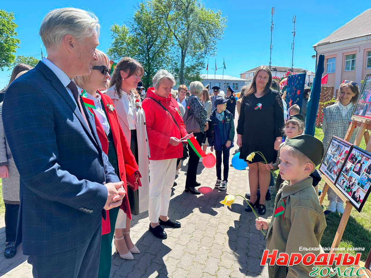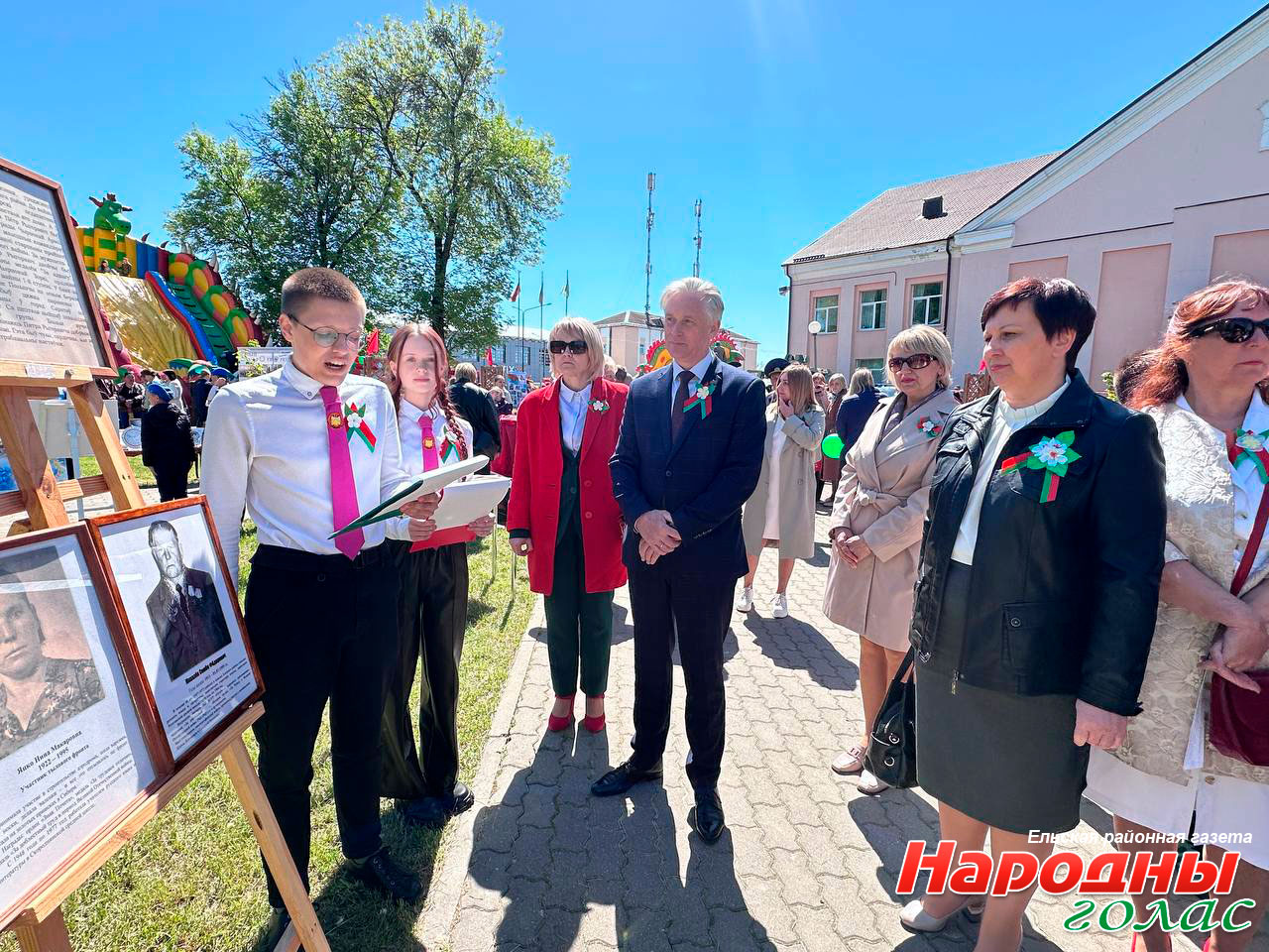 Выставочные экспозиции, посвященные Дню Победы, работают в городском сквере. Председатель Ельского райисполкома Виктор Иванович Замостик ознакомился с представленными проектами.
