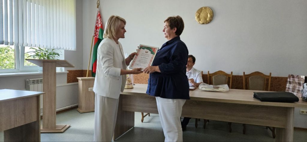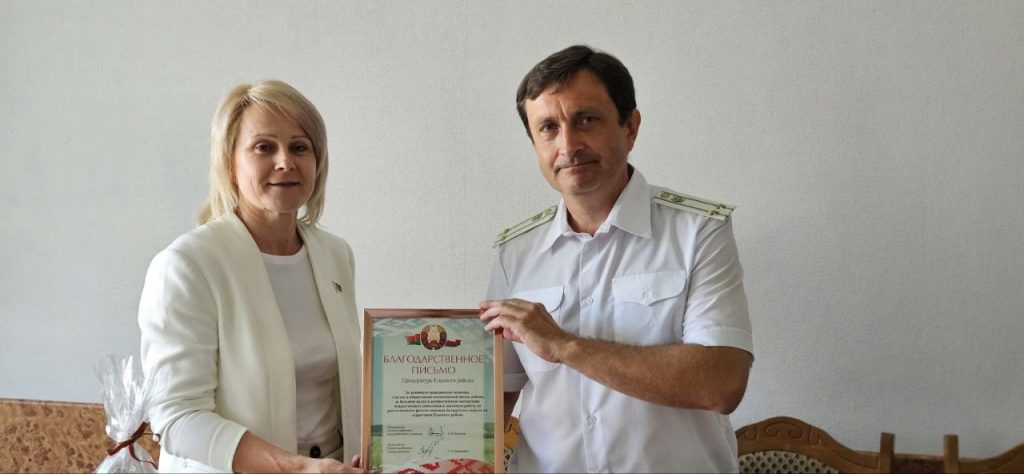 Председатель районного Совета депутатов Оксана Захарченко наградила грамотой и Благодарственным письмом райсовета и райисполкома работников прокуратуры Ельского района