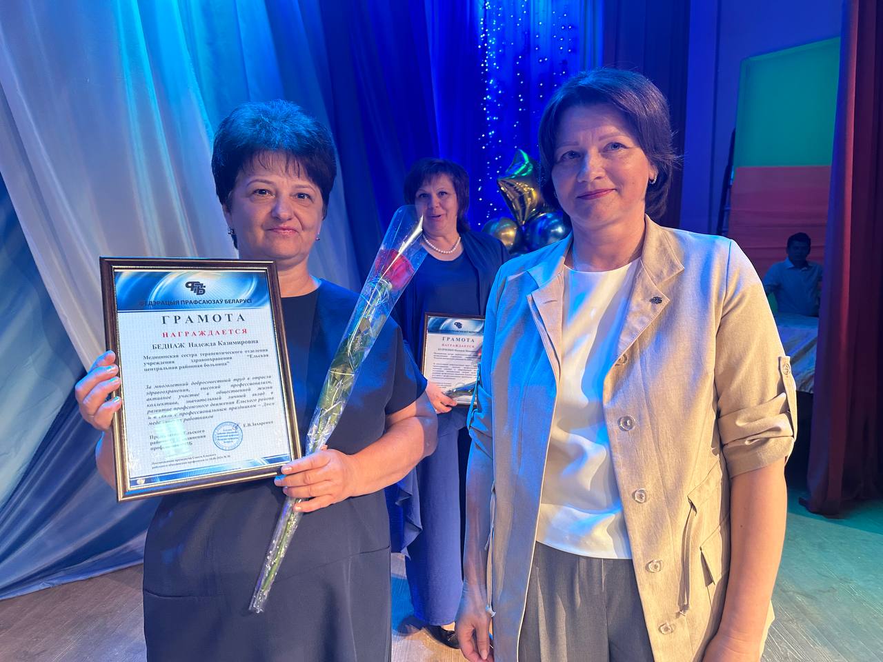 Елена Захаренко, председатель Ельского районного объединения профсоюзов, наградила медработников грамотами от федерации профсоюзов Беларуси за многолетний добросовестный труд в отрасли здравоохранения, высокий профессионализм и активное участие в общественной жизни коллектива. 🌼🌸🌺