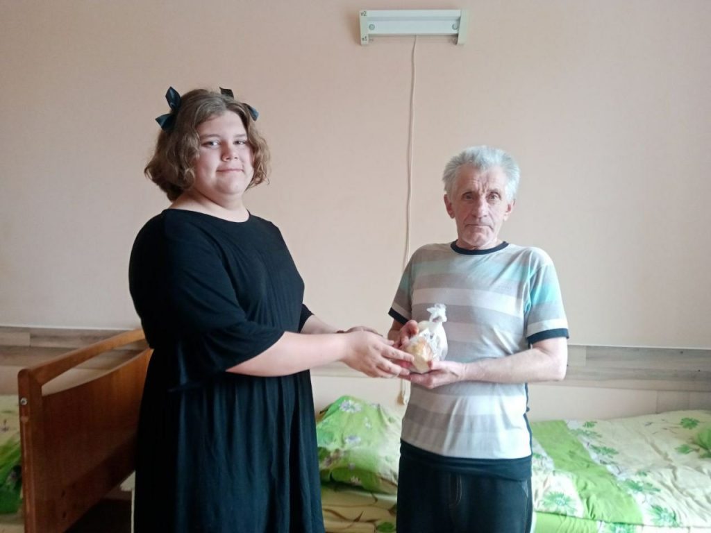 В рамках акции «80 полезных дел» учащиеся Скороднянской школы Ельского района посетили Скороднянскую больницу сестринского ухода. Ребята поздравили дедушек и бабушек с праздником Святой Троицы, угостили их сладостями и пообщались с пожилыми людьми.
