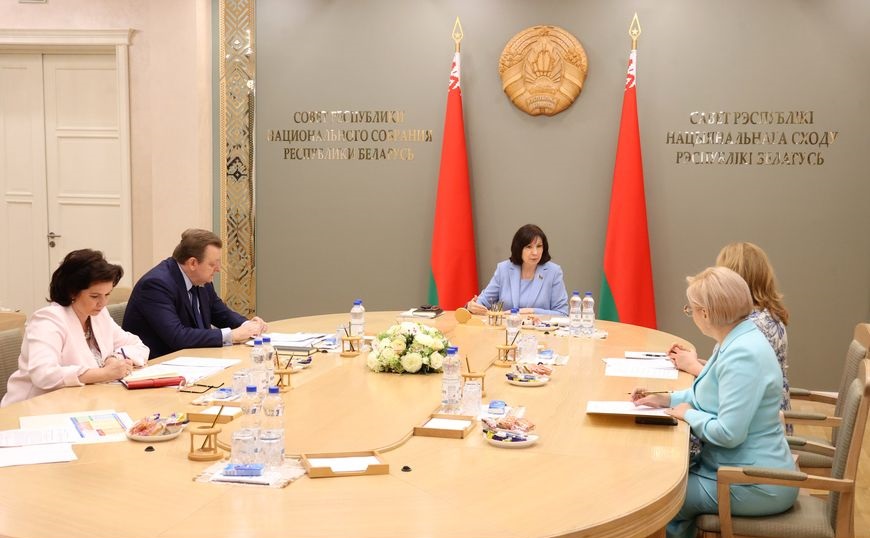 Председатель Совета Республики Наталья Кочанова проводит рабочее совещание по подготовке к участию в четвертом Евразийском женском форуме, сообщает корреспондент БЕЛТА.