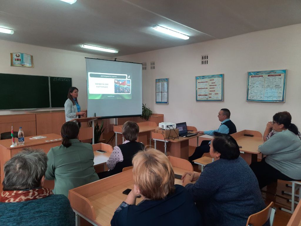 Председатель Ельского районного отделения партии «Белая Русь» Галина Ильюк ознакомила с деятельностью партии и основными ее приоритетными направлениями, рассказала об основных тезисах ВНС и Концепции национальной безопасности Республики Беларусь, а также вручила членские билеты новым членам партии.