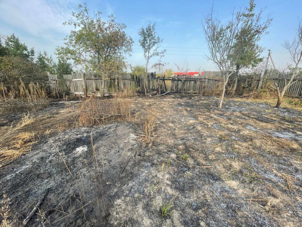 В результате пожара поврежден забор и уничтожена сухая растительность.