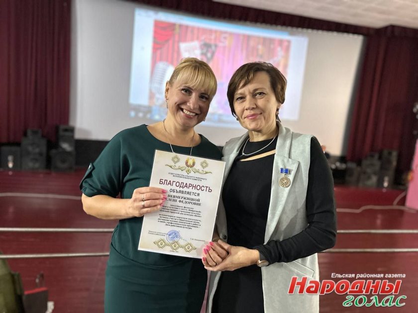 За активное участие в миротворческом движении района, формирование гражданственности и патриотизма у подрастающего поколения работники культуры были награждены Благодарностью Белорусского фонда мира. Заслуженные награды культработникам вручила Галина Ильюк, заместитель председателя Ельского райисполкома, председатель районного отделения ОО Белорусского фонда мира.