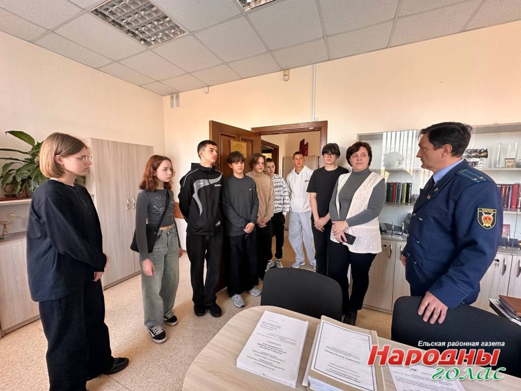 Учащиеся 9 класса Ельской районной гимназии сегодня посетили прокуратуру Ельского района. Ребята с большим интересом слушали рассказ о работе прокуратуры.