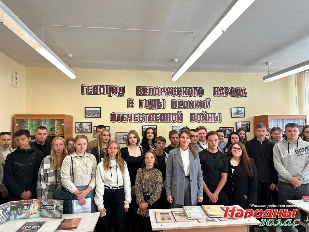 В средней школе №2 г. Ельска молодые специалисты познакомились с выставкой «Геноцид белорусского народа в годы Великой Отечественной войны». Директор школы и учащиеся патриотических классов рассказали гостям о цели создания и содержании выставки.