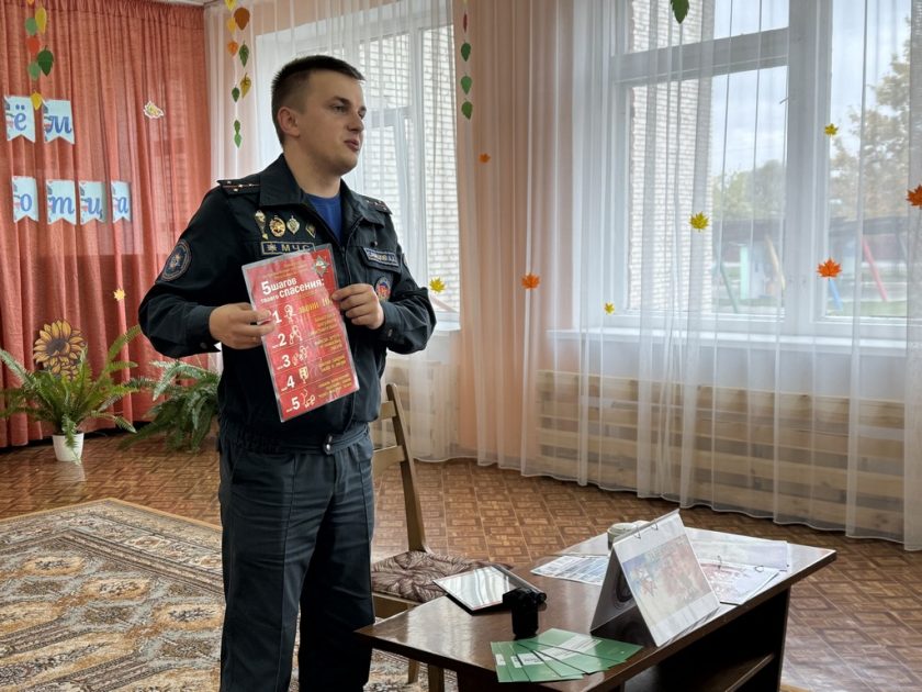 Сегодня состоялась встреча заместителя начальника отдела Алексея Савицкого с трудовым коллективом детского сада №2 г.Ельска. На встрече спасатель донес оперативную обстановку в районе, что позволяет гражданам лучше понять текущее состояние безопасности. Он ознакомил присутствующих с основными действиями, которые необходимо предпринять в случае возникновения пожара, а также напомнил алгоритм вызова спасателей. Это знание может спасти жизни и предотвратить значительный ущерб.
