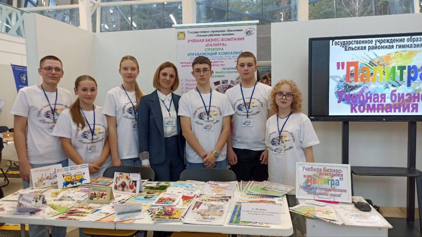 Учебная бизнес-компания «Палитра» из Ельской районной гимназии и «Уют в доме» СШ №2 Ельска на первом Республиканском форуме учебных бизнес-компаний учреждений образования «Знак качества», который проходит на базе учреждения образования «Национальный детский технопарк».