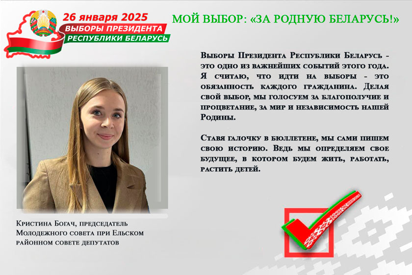 «Выборы Президента Республики Беларусь — это одно из важнейших событий этого года. Я считаю, что идти на выборы — это обязанность каждого гражданина. Делая свой выбор, мы голосуем за благополучие и процветание, за мир и независимость нашей Родины.