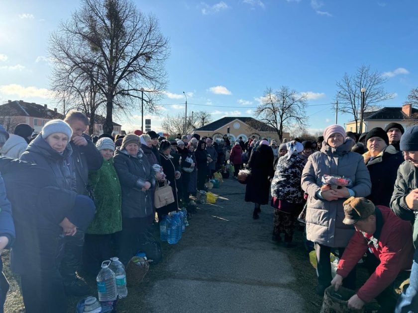 Ельчане выстроились около церкви, чтобы получить освященную крещенскую воду, которая обладает чудотворной силой.